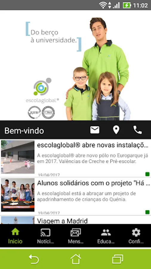 Mobile App of the Global School that allows the educational community (students, parents, teachers and the general public) can have the information in the palm.