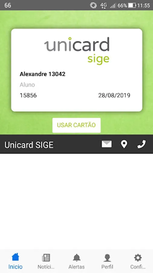 Unicard SIGE is a mobile application for users of the Unicard SIGE Portal (students, staff and teachers) that brings the big news of digital card - your card with you anywhere!