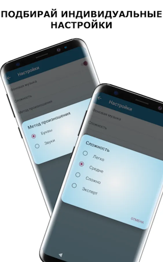 The game features two methods of syllable division: classical syllables and "warehouses" according to the Zaitsev method, which can be changed in the application settings.
