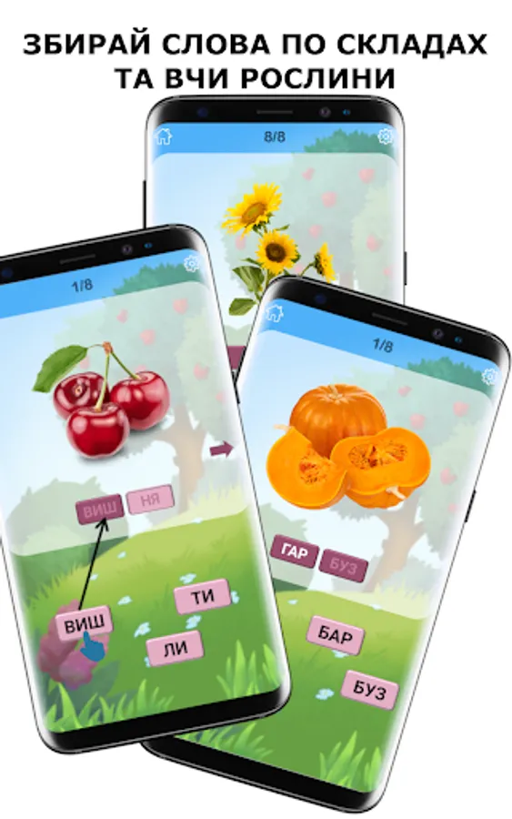 The application is intended for teaching children to read in Ukrainian and study plants.