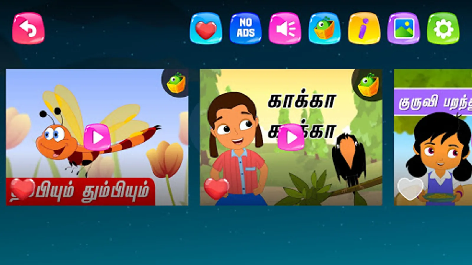 A wonderful app consisting of 200 Tamil Rhymes for your kids with songs, music, animations, and sing-along.