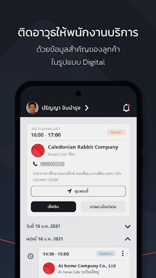 สามารถติดตามดูคุณภาพของการบริการและความคืบหน้าของเจ้าหน้าที่ภาคสนามทุกรายแบบ Real-time