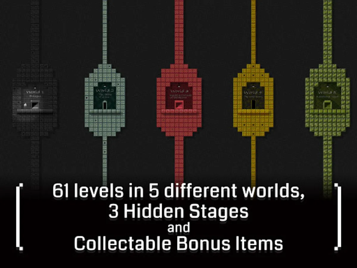 - 61 levels in 5 different worlds, 3 hidden stages and collectable bonus items