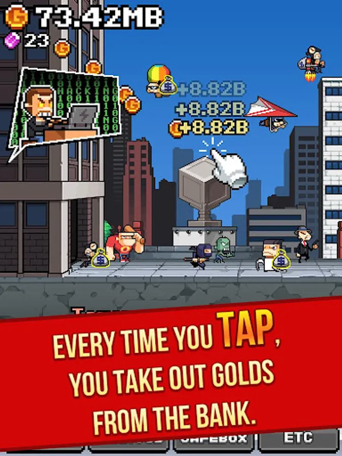 - Every time you tap, you take out golds from the bank.
