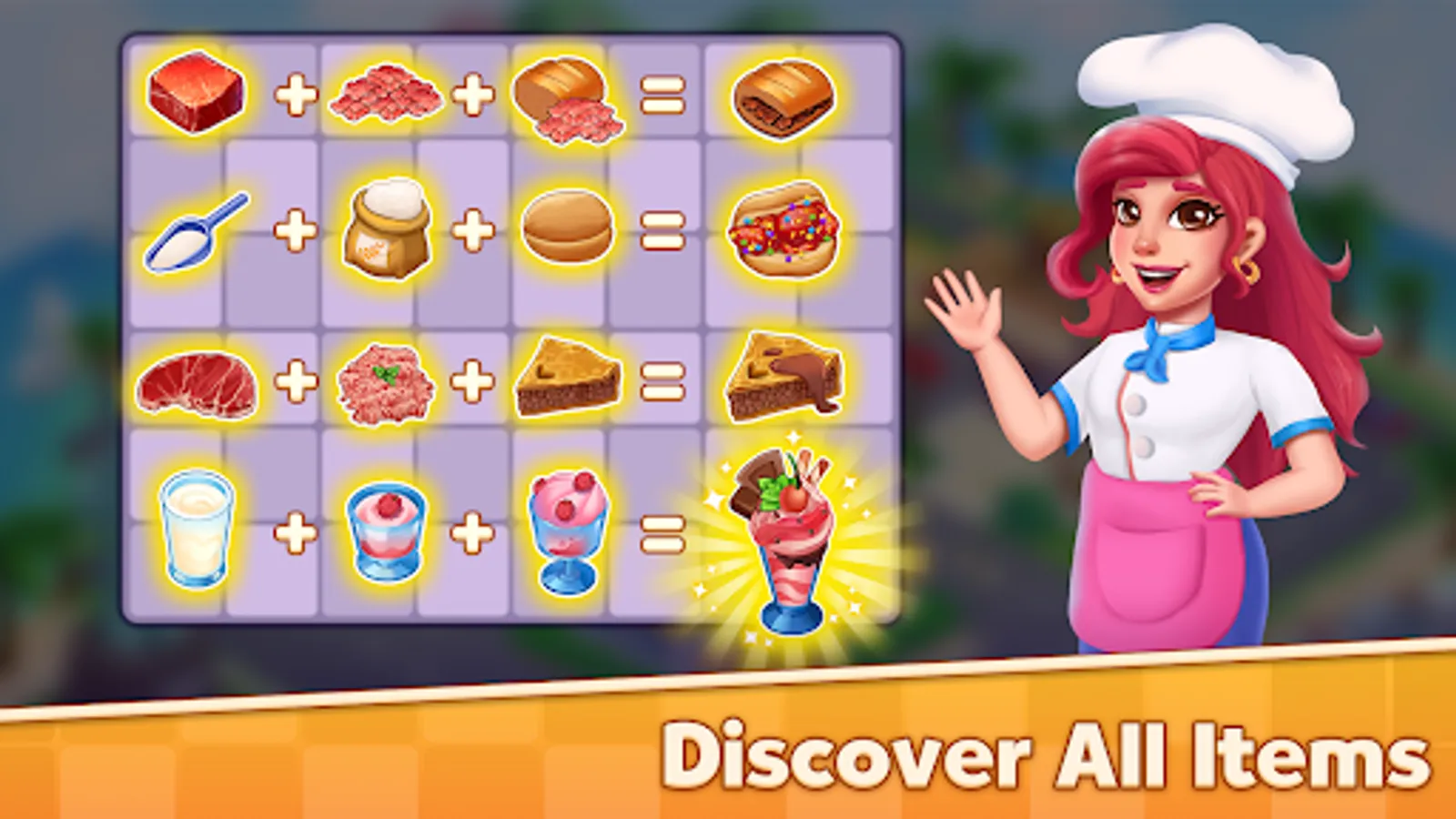 In this food simulator game, you will start with simple ingredients and recipes, such as bread, cheese and tomato. Merge them to create new dishes, such as pizza, sandwich and burger. Then merge those dishes to create even more tasty and exotic cuisines, such as sushi, pasta and curry. The more you merge, the more you unlock! With hundreds of different food combinations, ranging from street food staples to high-end delicacies, you can experiment with flavors and create your own unique recipes. As you progress through the game, you'll unlock new restaurant themes and exciting challenges, and renovate your restaurants with fresh and stylish designs.