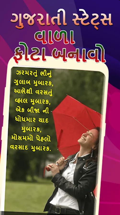 Write Gujarati Text on Photos app has allowed you to paste any shayari, gujarati poetries, gujarati quotes on your photo. There are many background image for your use too. You can also use your own image.
