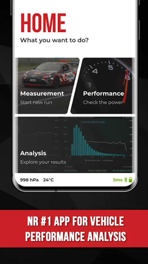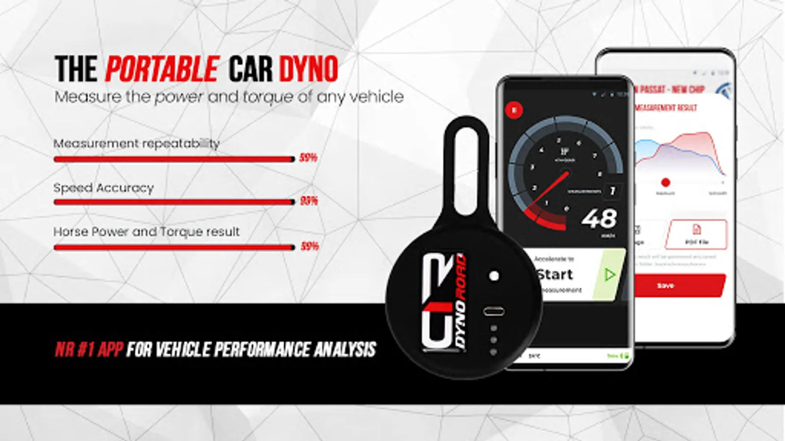 The DynoRoad connects to your smartphone via Bluetooth and shows you all the data you need so there's no need to attach extra cables to your vehicle, not even to the OBD Socket! All measurements are taken by our revolutionary probe!