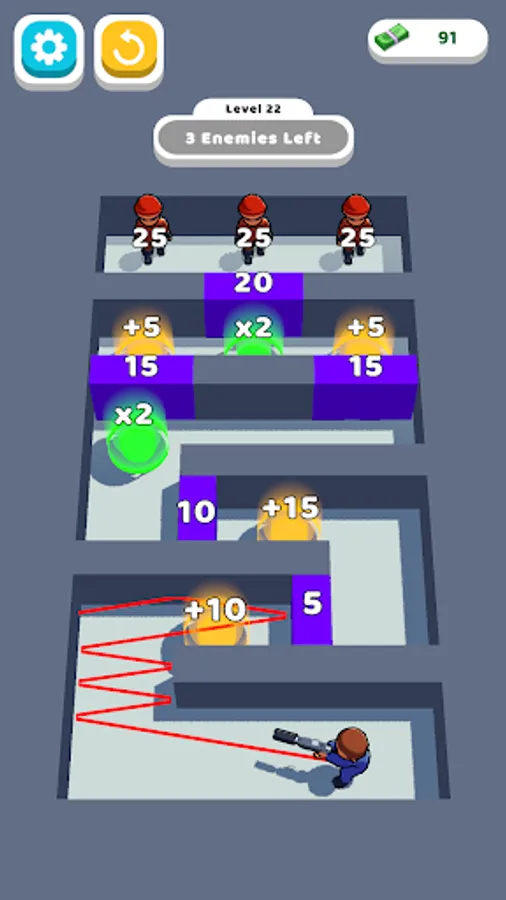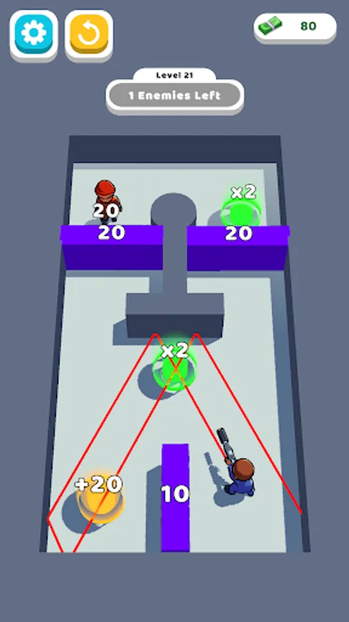 Step into the shoes of a skilled agent on a mission to destroy enemy targets. In this pulse-pounding game, you must use your strategic skills to aim your shots and hit multiple platforms to maximize your destructive power. The more platforms you destroy, the more bullets you'll have at your disposal! But be careful - the enemy is armed and dangerous, and they'll do anything to stop you. Aim for enemies while you take out obstacles and shoot down targets, all to complete your mission and become the ultimate agent. With immersive graphics and addictive gameplay, this puzzle game will keep you on the edge of your seat. So, what are you waiting for? Get ready to take on the enemy and prove your skills as an agent!