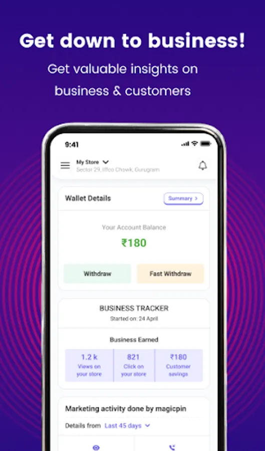 Manage your existing magicpin store - vouchers, sales, promotions, withdraw money with this app.