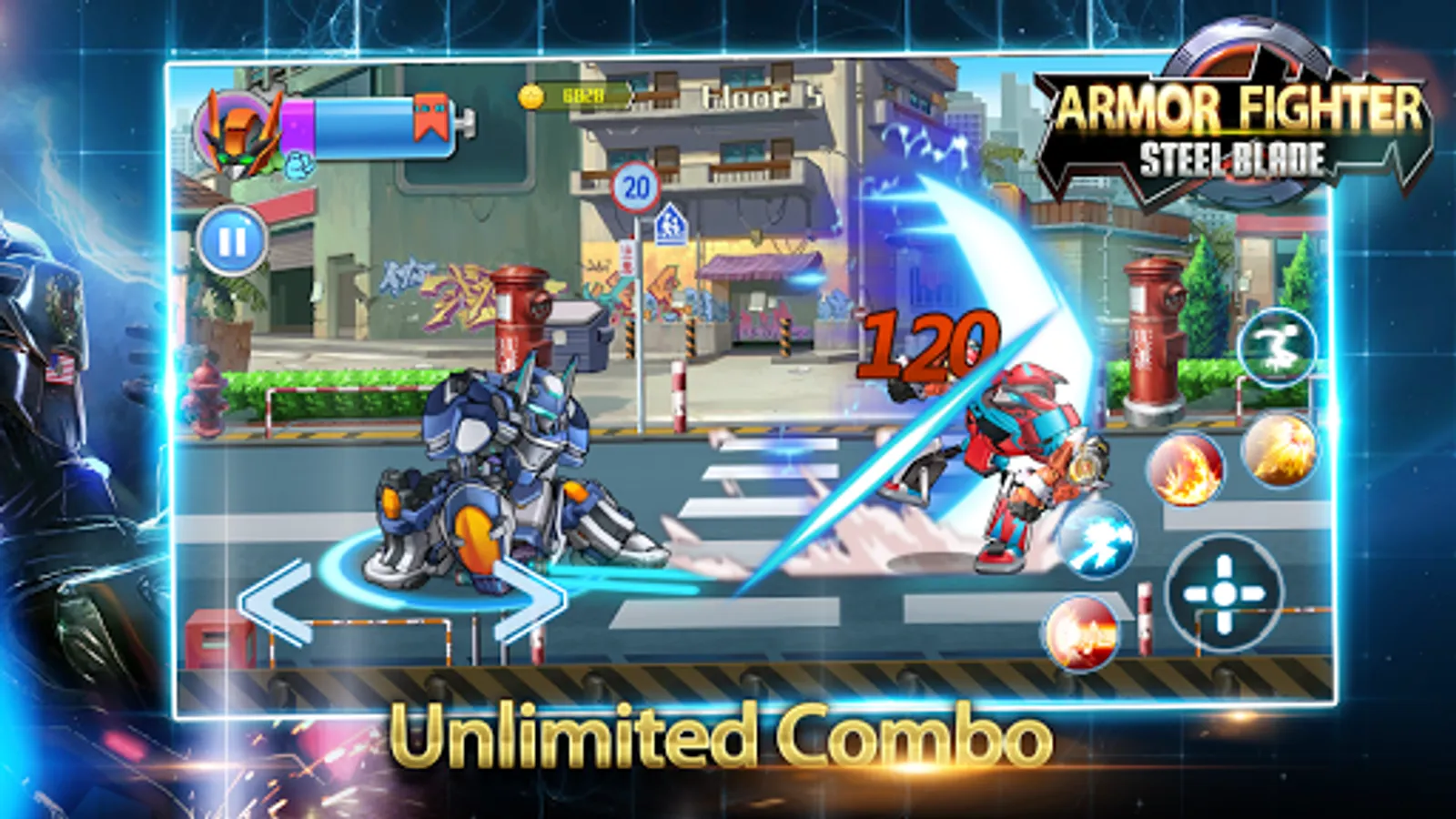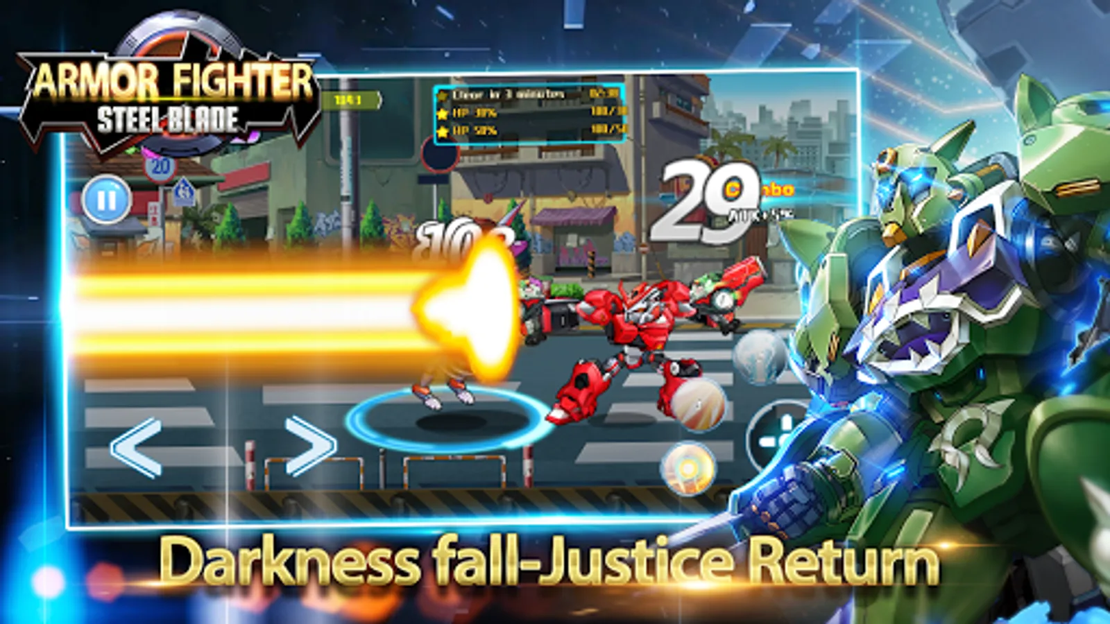 The fight with steel and fire! The giant armored robot will fight for the new faith. The steel blade will tear the defense line of the evil iron empire. More new design giant armored robots, fight with kinds of high technology weapon. It is the new level of fighting game on mobile game platform. The new graph display technology helps you feel high quality audio-visual enjoyment on mobile game. Come to play this game and feel the new fight passion!!