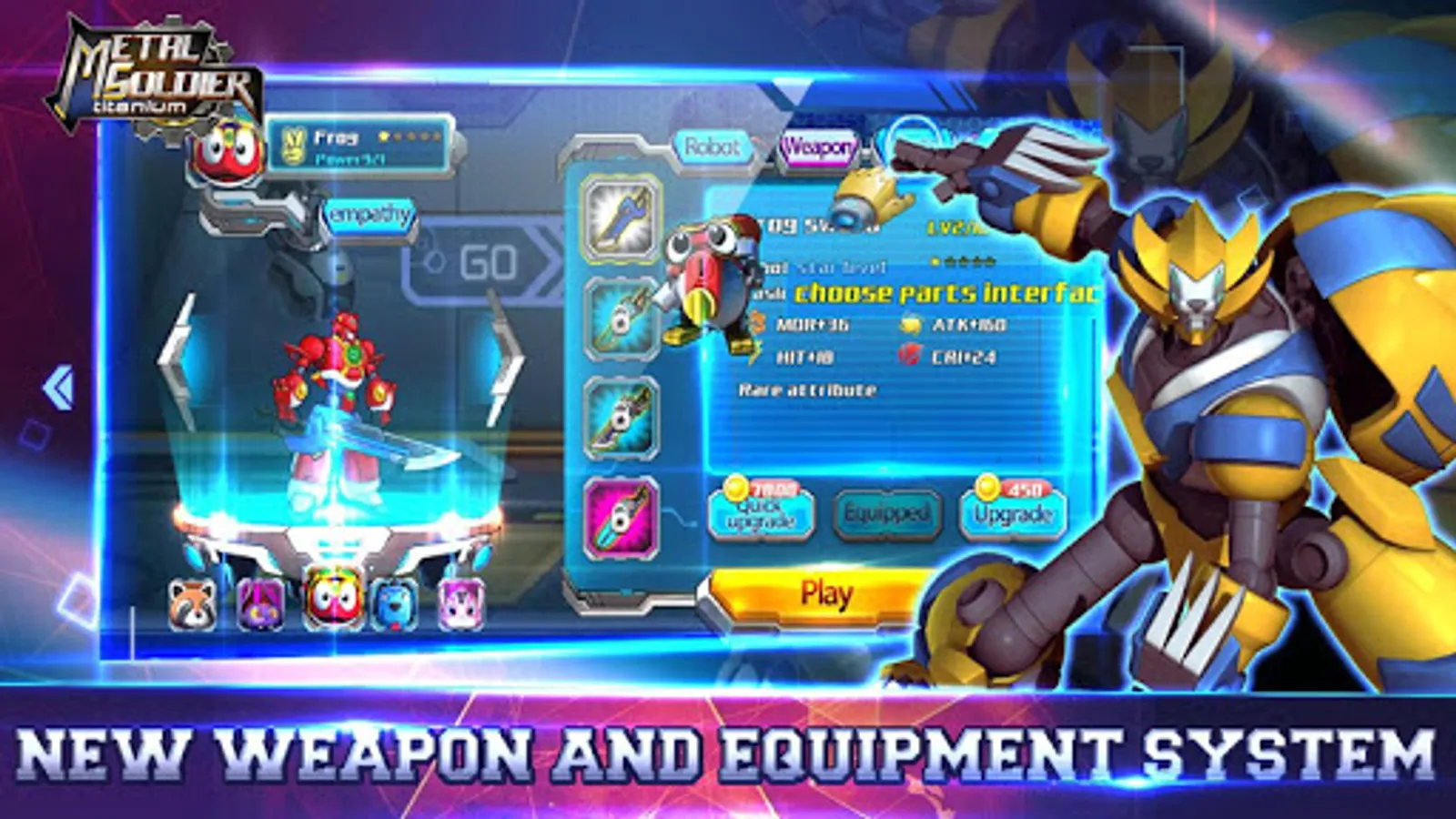 This is the new gameplay of giant metal robot fighting game. Multiply Mecha robot characters can be used. You can find your own way to play this game by customize your own metal robot squad.