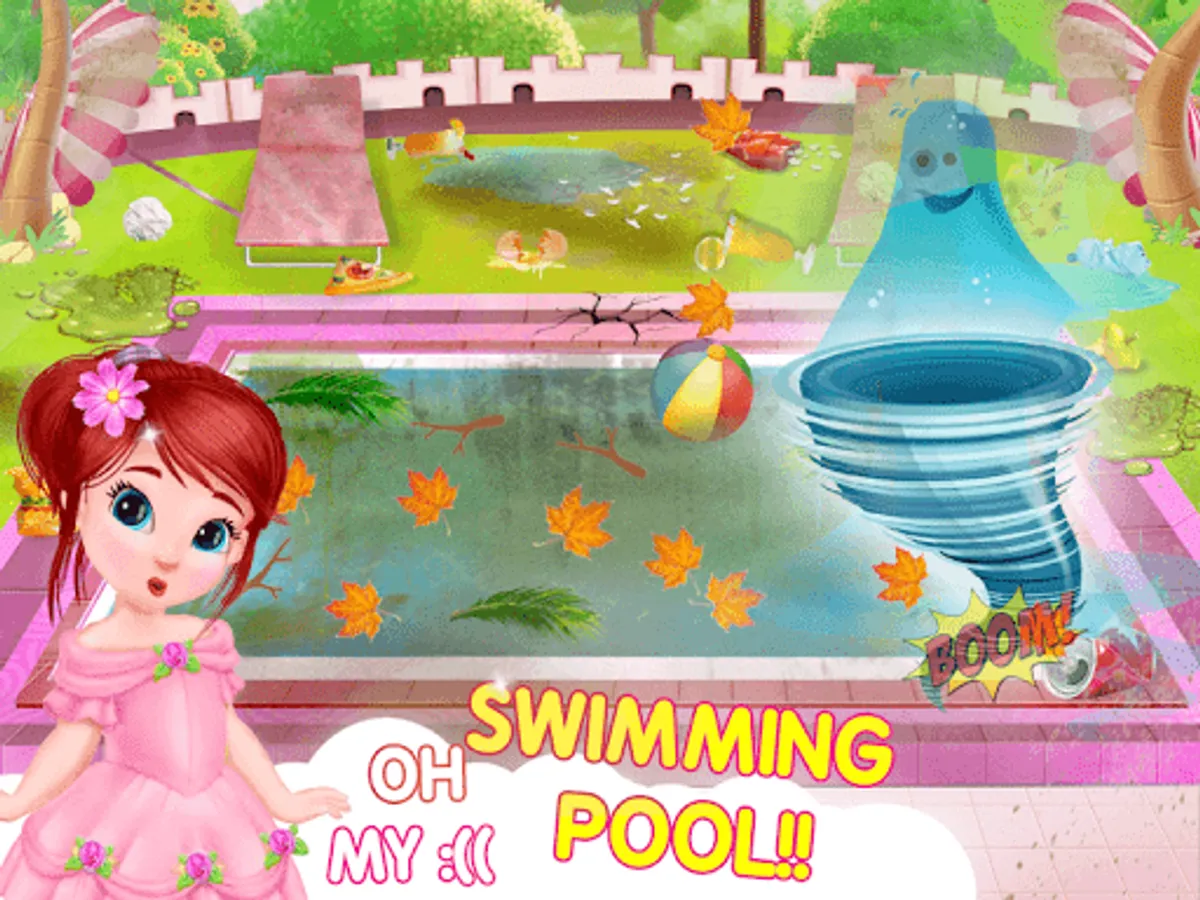 —> Swimming Pool Cleaning: Help little one to clean the swimming pool by throwing all the garbage to dustbin, fixing the floor, cleaning the chairs, changing the fresh water to make swimming pool clean and fresh.