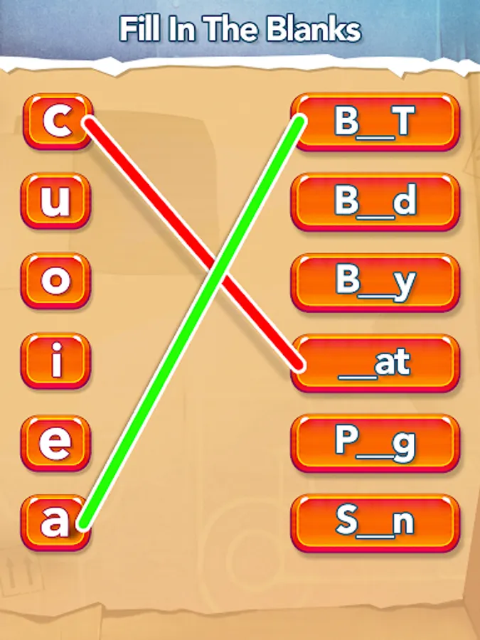 And the last category is, fill in the blanks - which has basic spellings - kids have to match the correct alphabet to form spellings.