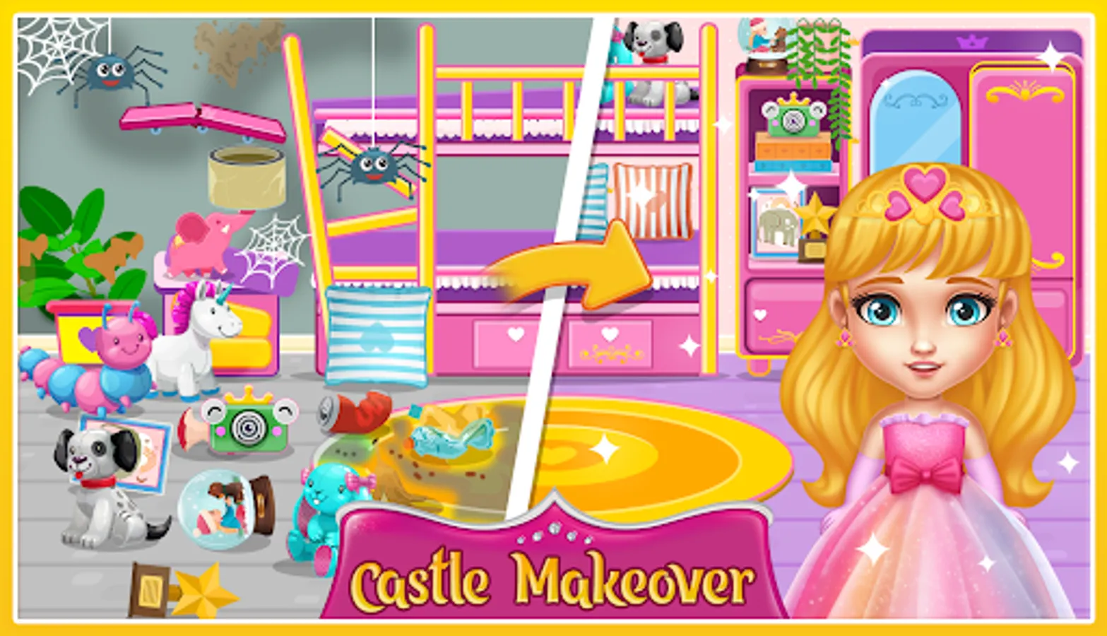 It includes fun best cleaning games for girls, a little princess farm, a sweet baby girl’s carnival, amusement park fun games, a Little princess car repair garage, and a sweet baby girl princess beauty salon which includes Hair Salon, Spa Salon, Princess Makeover and Princess Dressup.