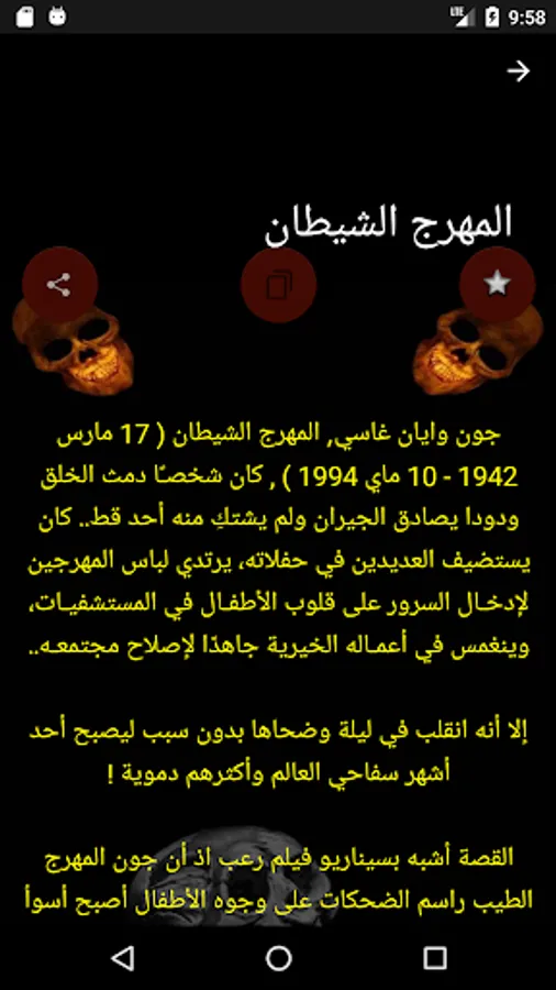 The application is directed to fans of terrifying, frightening and exciting stories from adults, and it is not recommended to read it for children.