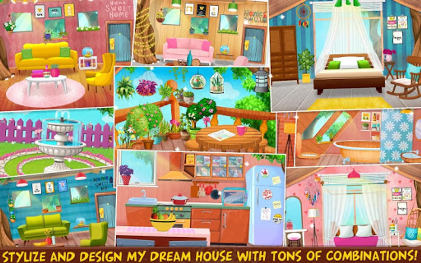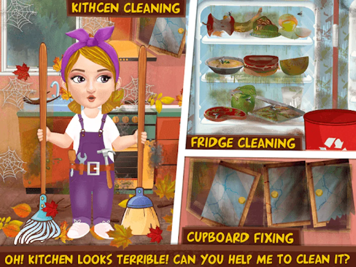 Be ready to clean, fix, repair, renovate, decorate and design. It is the best game to learn good habits and responsibilities like keeping things tidy and beautiful, learn how to help your parents in cleaning and fixing as well as decorating skills, learn how to take care of your cute dream house. Stylize and design your dream home with tons of combinations.