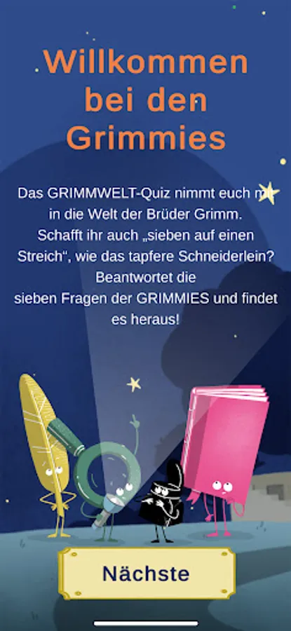 The app GRIMMkids enables children between 5 and 12 years to explore the GRIMMWELT and in particular the exhibition area with a focus on linguistics. The GRIMMIES are the five key figures of the GRIMMWELT to guide the children through the exhibition. Modern breadcrumbs in the form of stylized chocolate cookies show the way. By scanning the cookies placed on the floor, the quiz questions are triggered at the respective station.