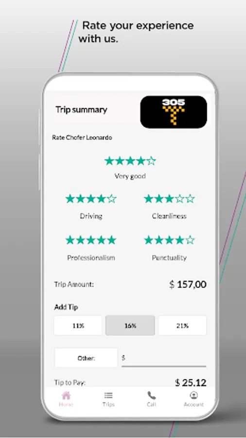 . Rate your trip and, if you wish, leave a tip for the driver.
