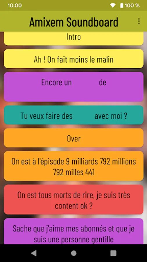 This application allows you to have fun playing the best cult phrases said by Amixem!
