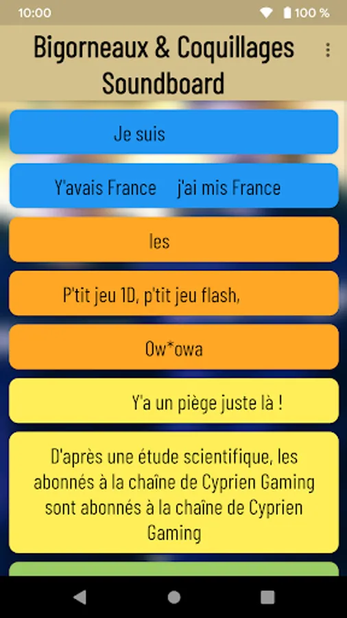 This application allows you to have fun playing the best cult phrases said by Periwinkles & Shells!