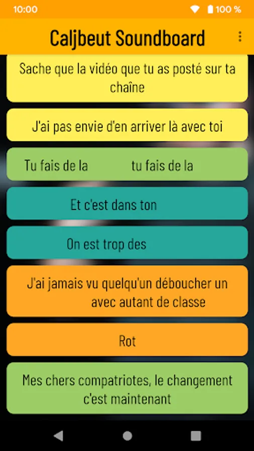 This application allows you to have fun playing the best cult phrases said by Caljbeut!