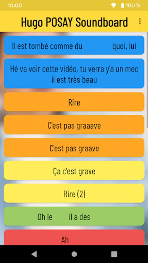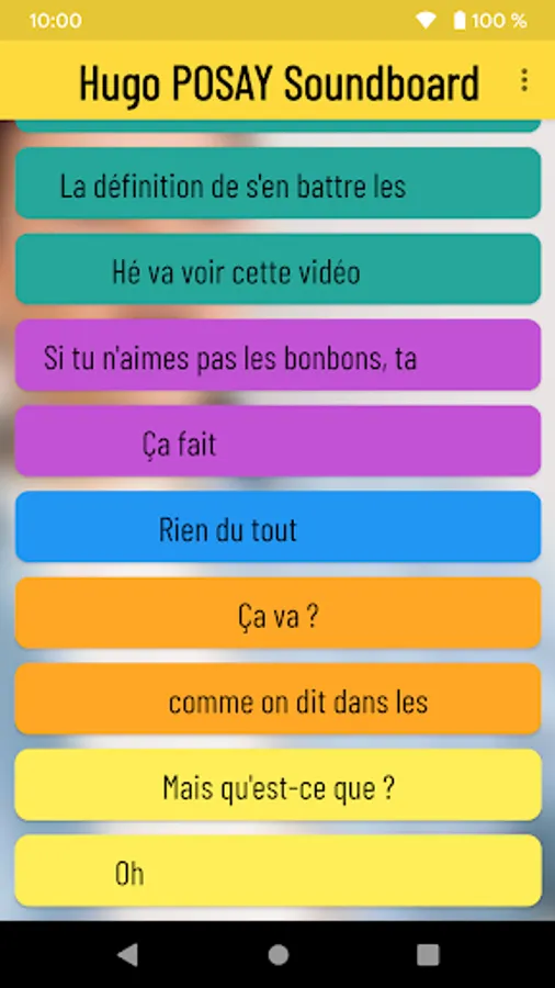 This application allows you to have fun playing the best cult phrases said by HugoPOSAY!