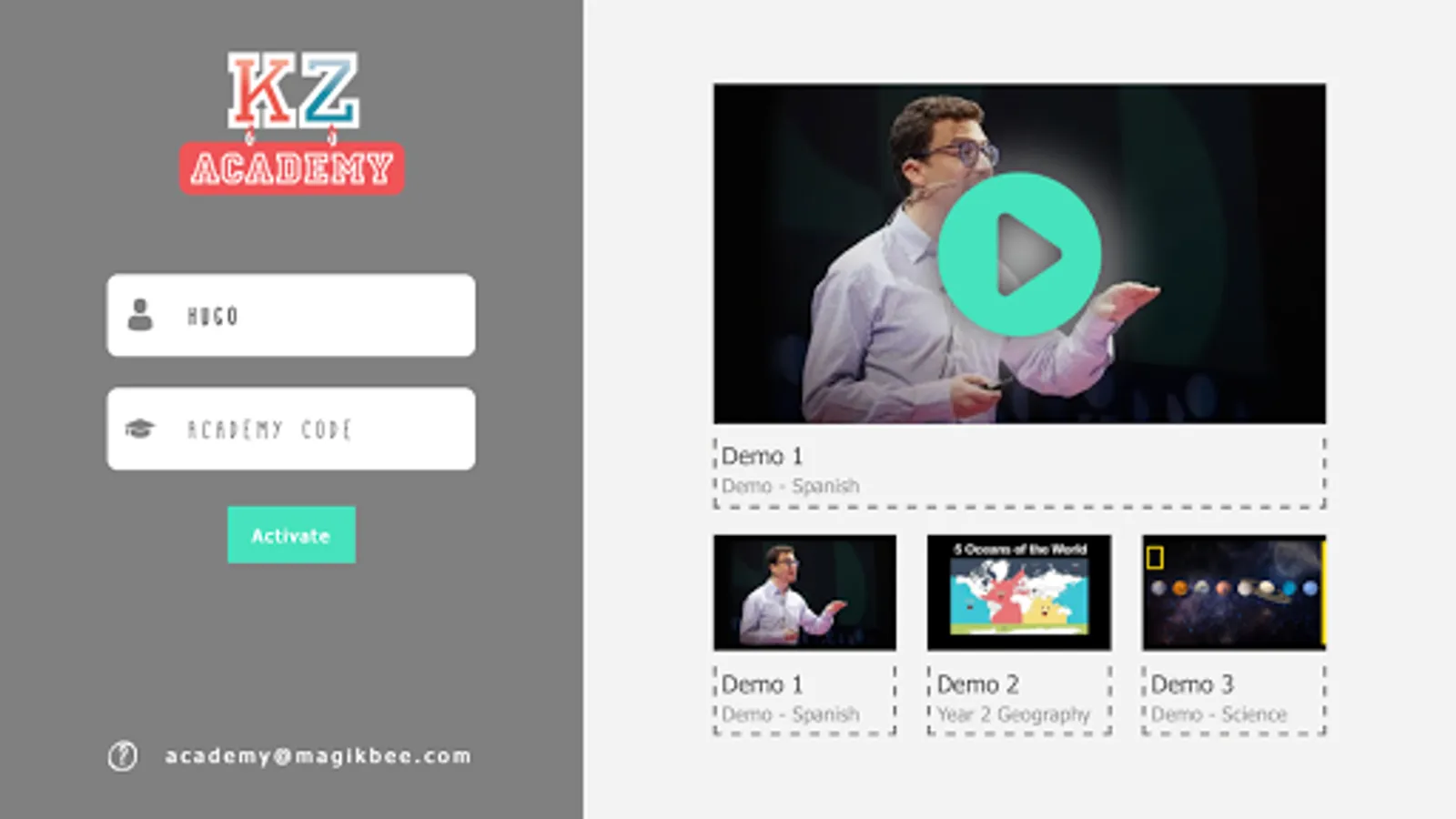 KZ Academy is a multi-language video learning tool that tests students on the content they watch.