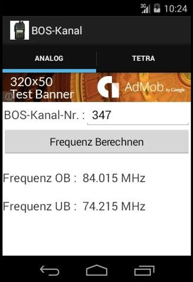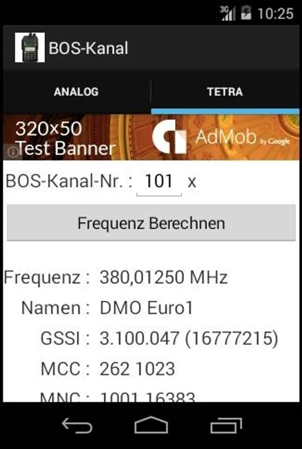 BOS-channel number. Enter and frequencies are calculated. Now with support for the new TETRA radio.