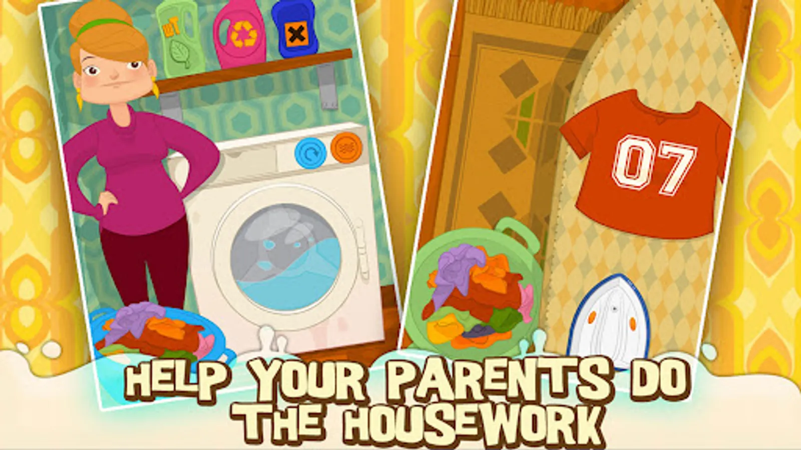 A familiar environment, home and everyday activities like bathing and doing the laundry, turn into an interactive game for spending some quality time together!