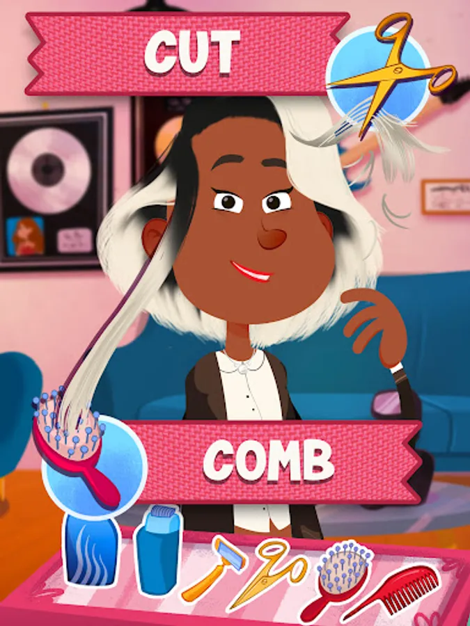 Step into the hair salon and use a variety of tools to comb, cut and style your models' hair.