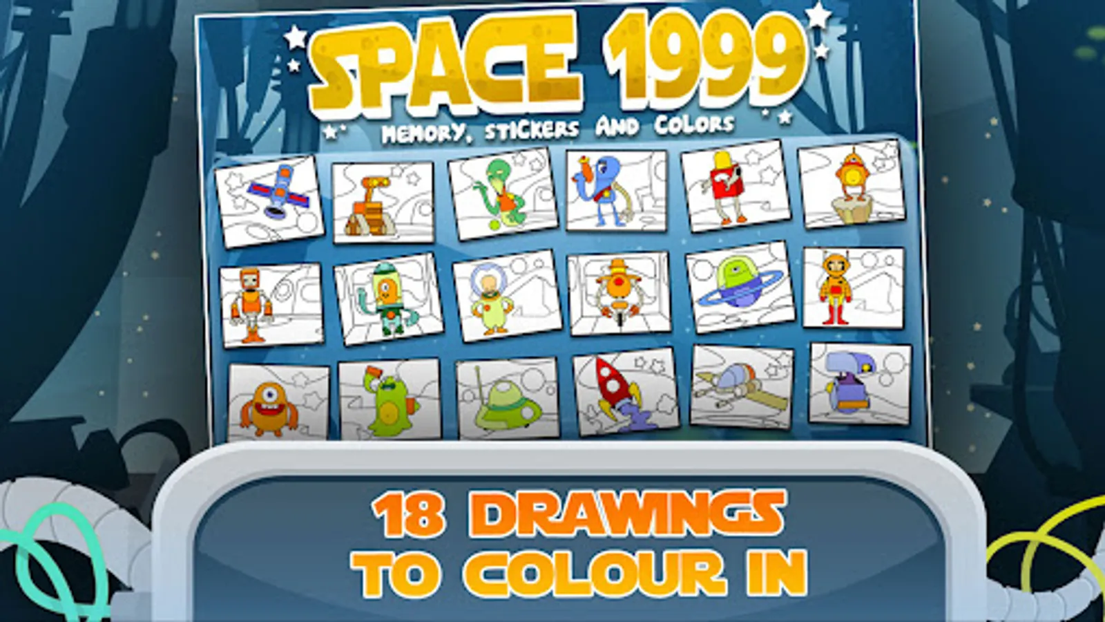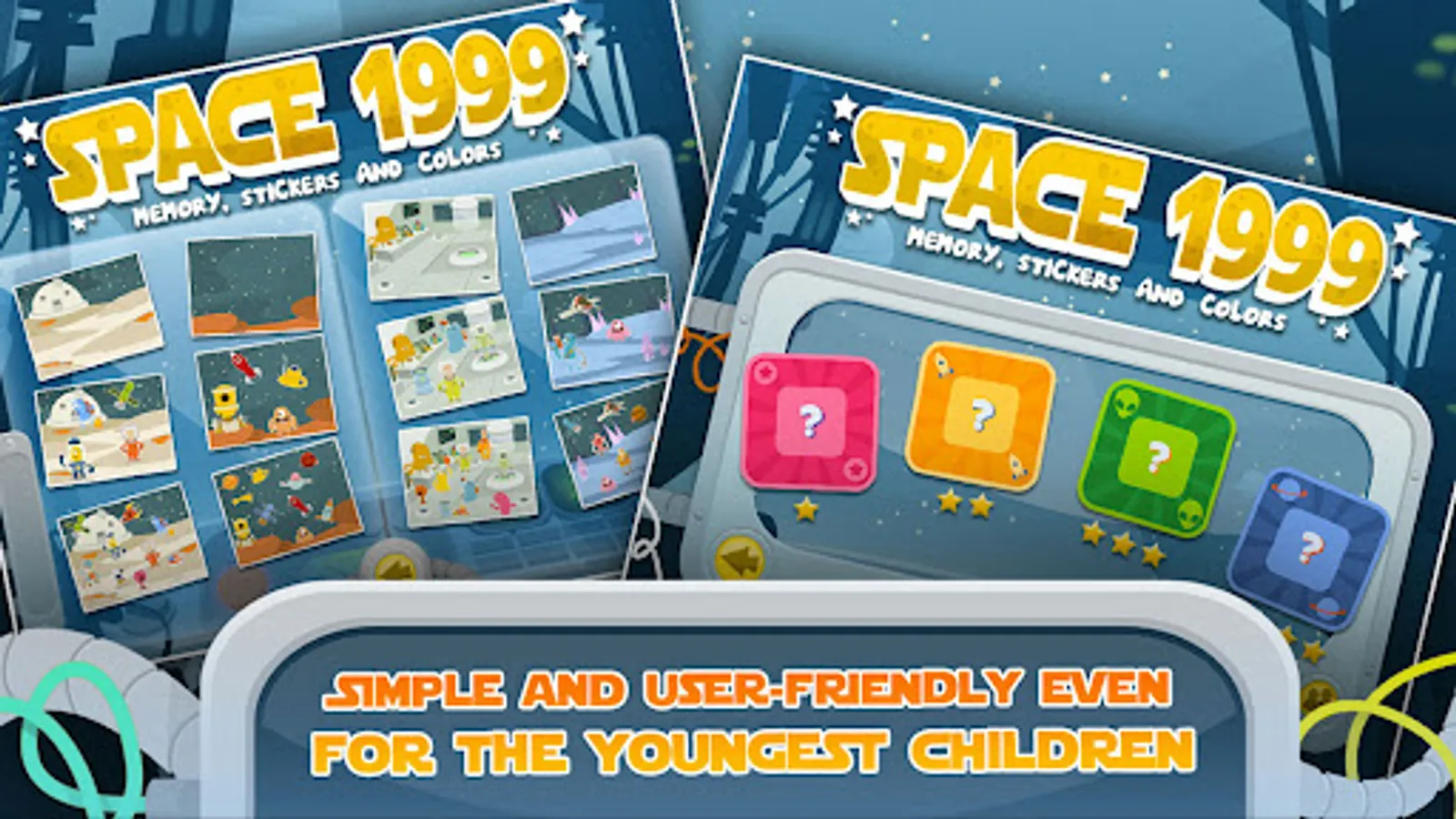***** Space 1999 - Memory, Stickers and Colors Games for Kids *****