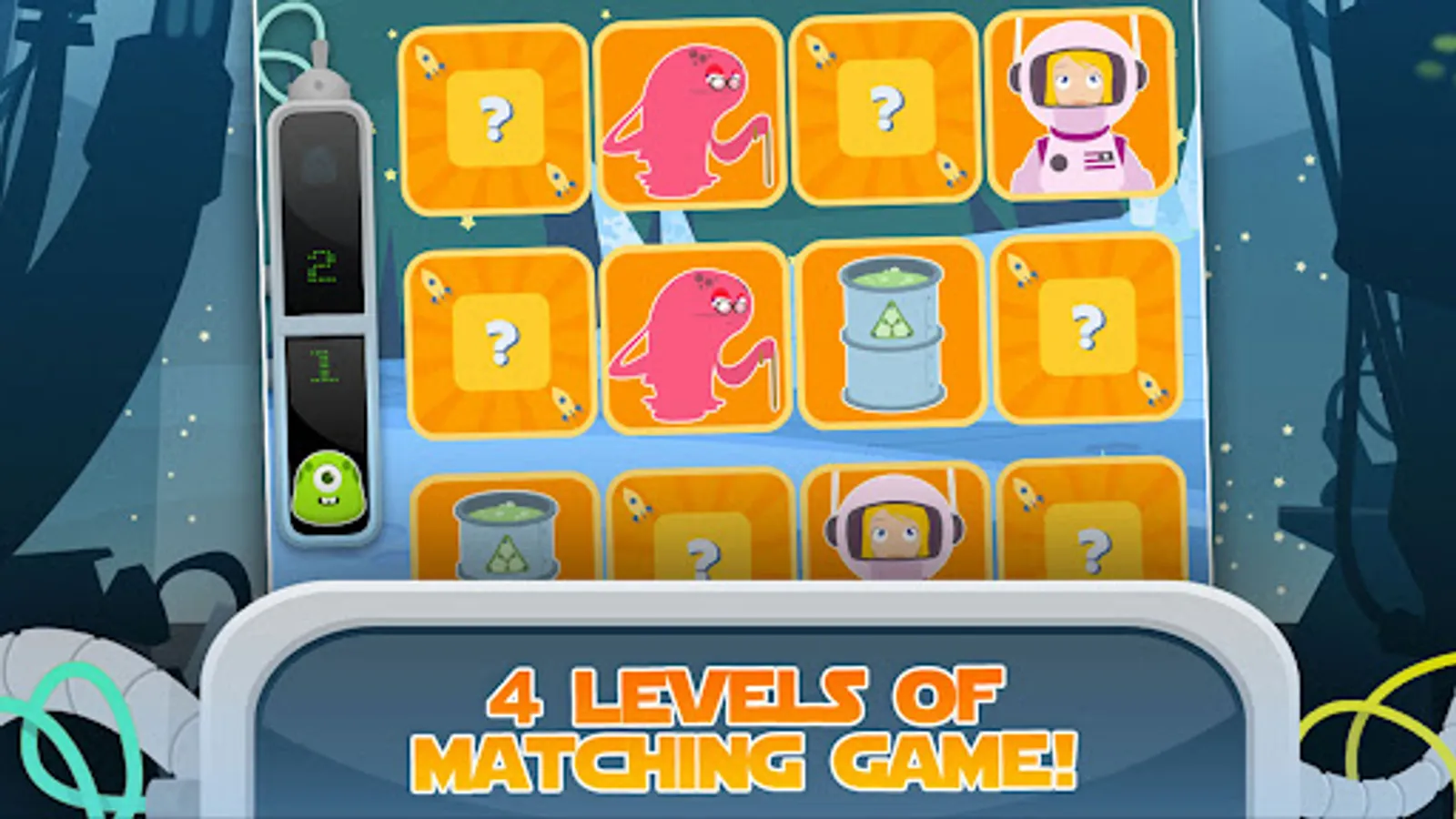 Care for details and focus on younger players make “Space 1999” an educating, relaxing application for your children.