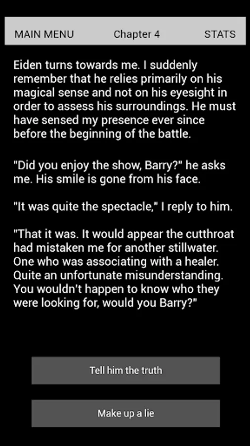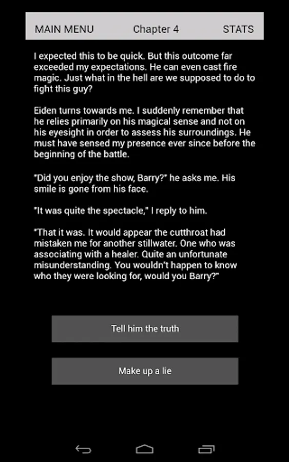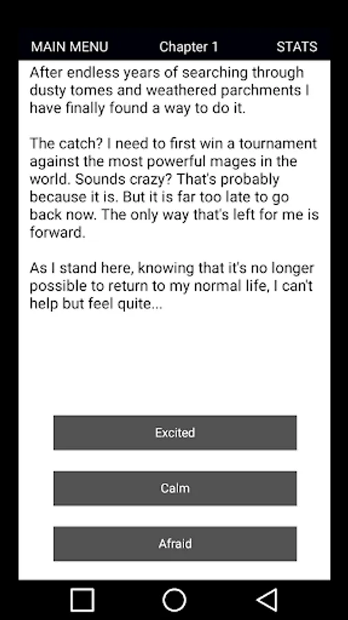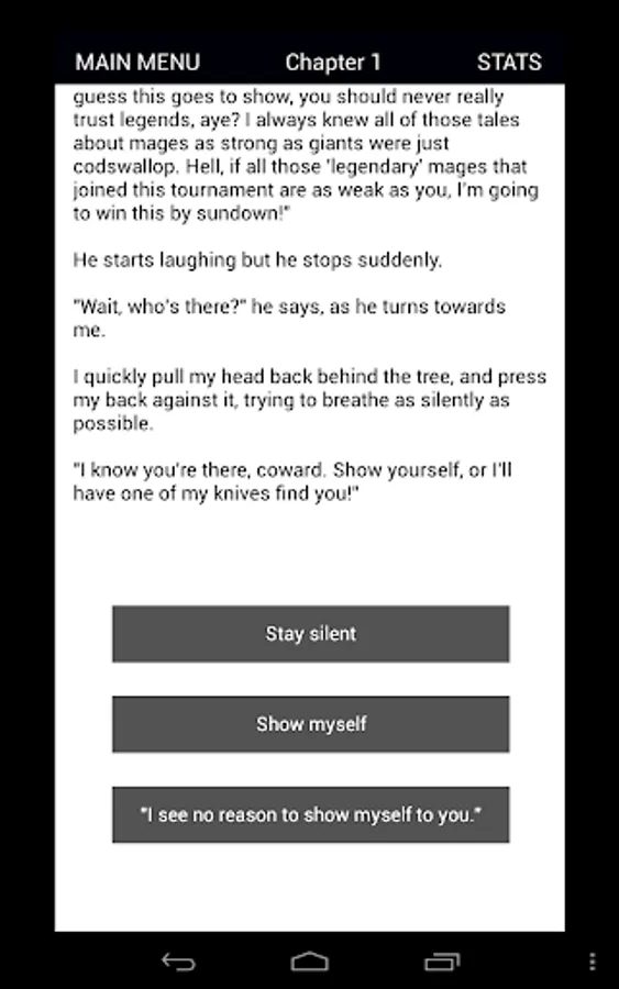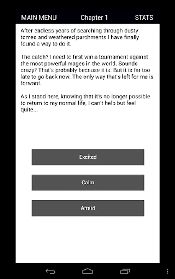 As in all interactive novels, your choices will affect the story, and making wrong choices can even lead to your death. Besides the traditional choice making of regular Choose your own path games, Magium also has stats that you can upgrade with points that you will receive occasionally, throughout the game. These stats will be checked by the game from time to time, to see if they are high enough to allow you to perform certain actions. For example, if your ancient languages stat is high enough, you can understand what animals and monsters are saying.