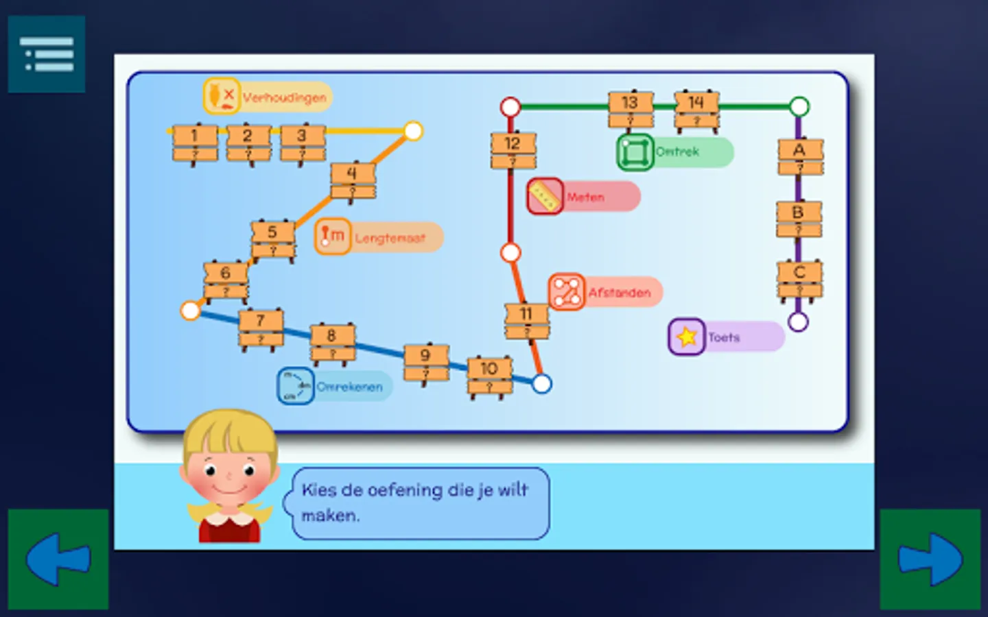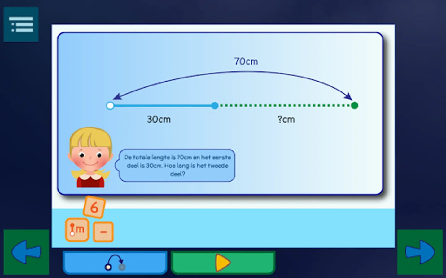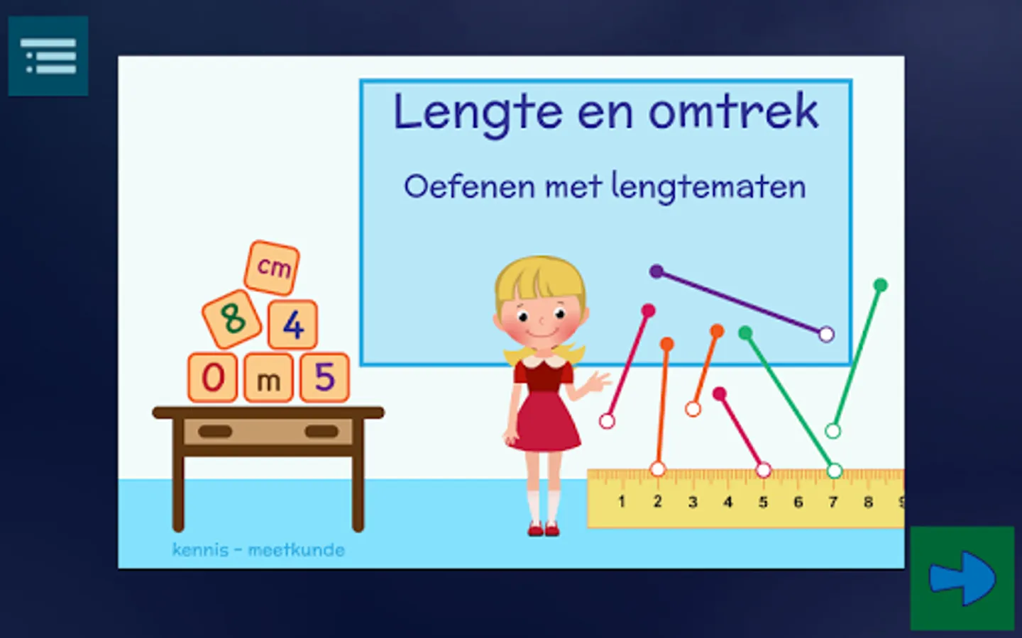 In 14 easy steps, children learn how to count with meters, centimeters and other lengths. They also discover the secrets of calculating the perimeter of various figures. This app is the ideal support for preparing cito tests and fits in perfectly with Dutch primary education, groups 5 to 8.