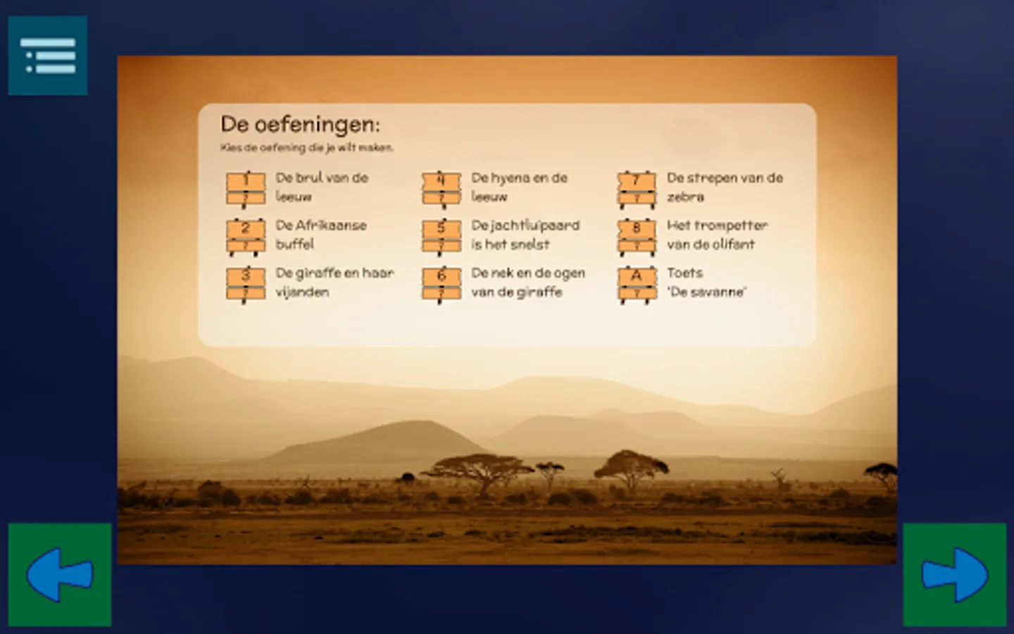 Do you have trouble reading comprehension at school? Then this is a fun practice app. This app contains eight fun exercises and one combined test. Each exercise contains one or two pieces of text that you must read carefully. You will then receive random questions about this text. You can use this to properly practice the research question that you normally get when reading comprehension. All texts are about animals that live on the savannah in Africa and are made suitable for the primary school. The app contains the following exercises: