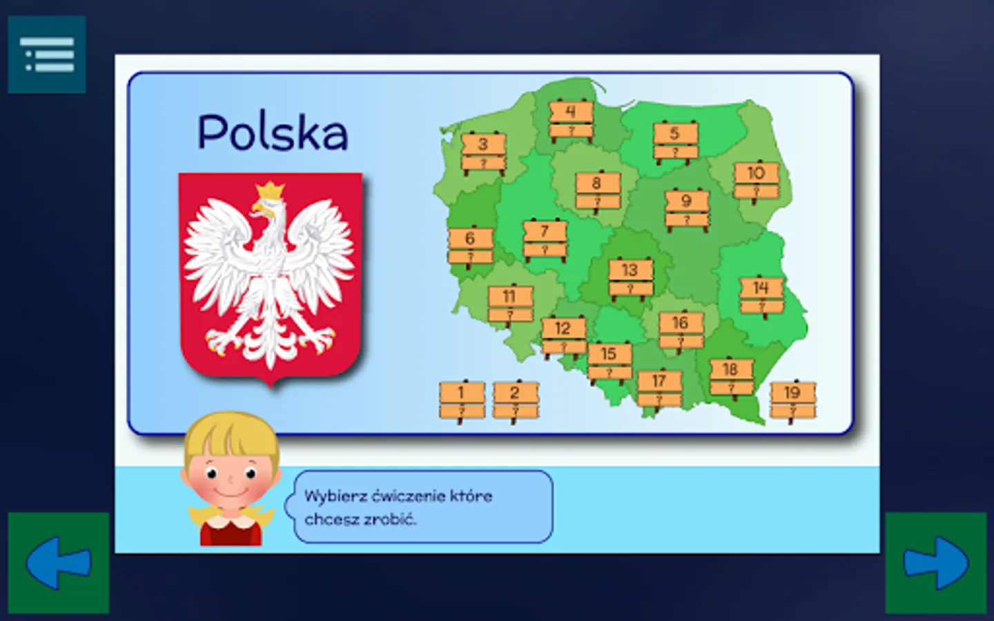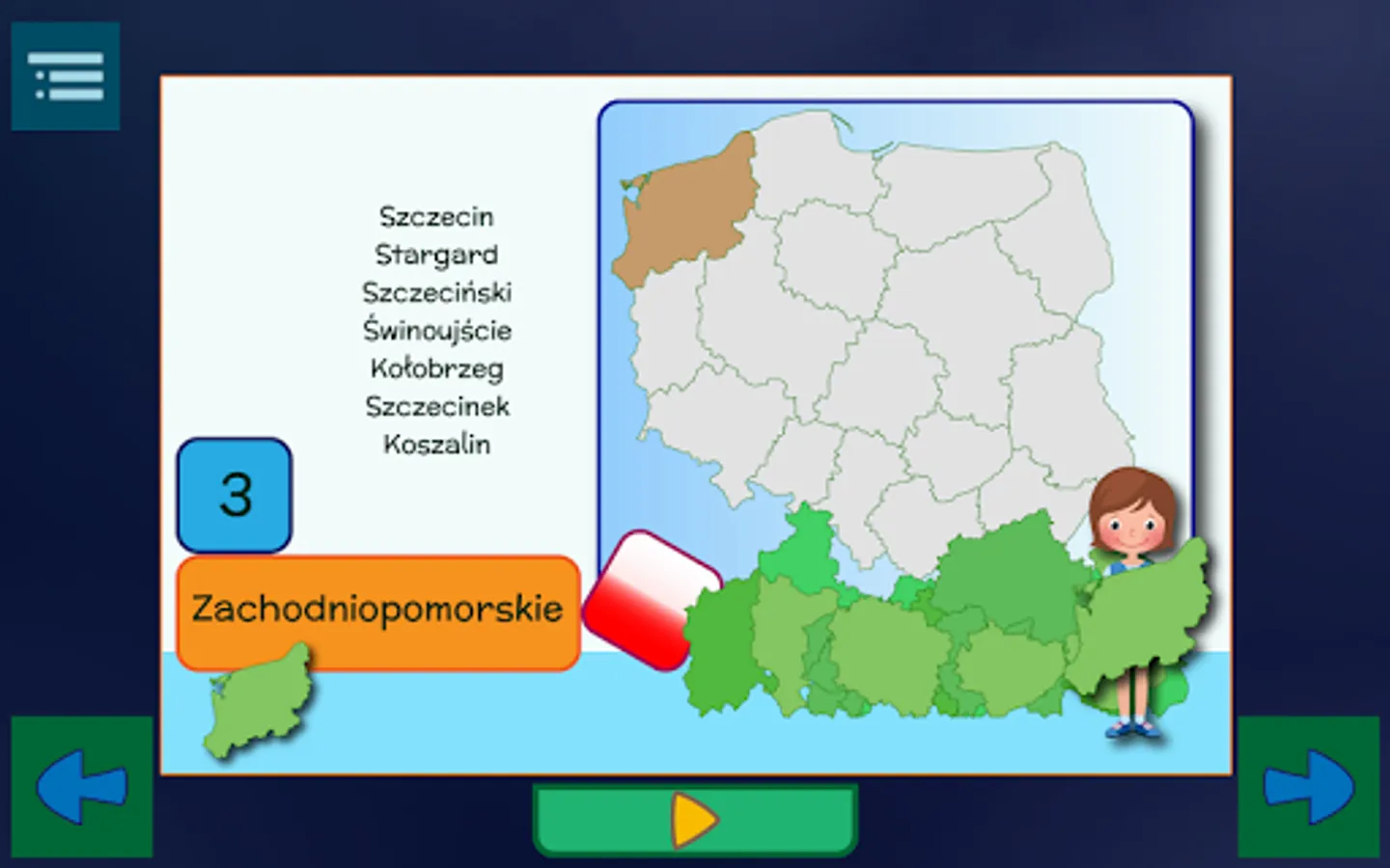 First you will learn the names and locations on the map of all provinces and their capitals. The next stage will be learning the largest cities in individual voivodships.