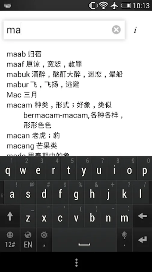 Chinese descriptions and lookup for Bahasa Malaysia, commonly used in Malaysia. Works offline without the need of internet.