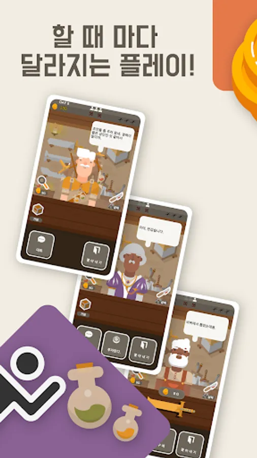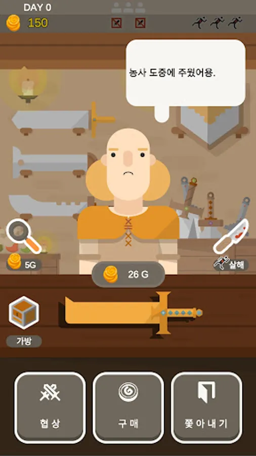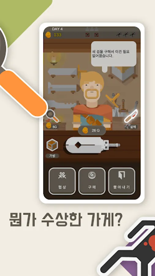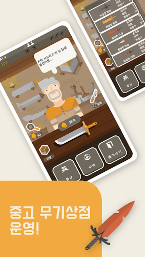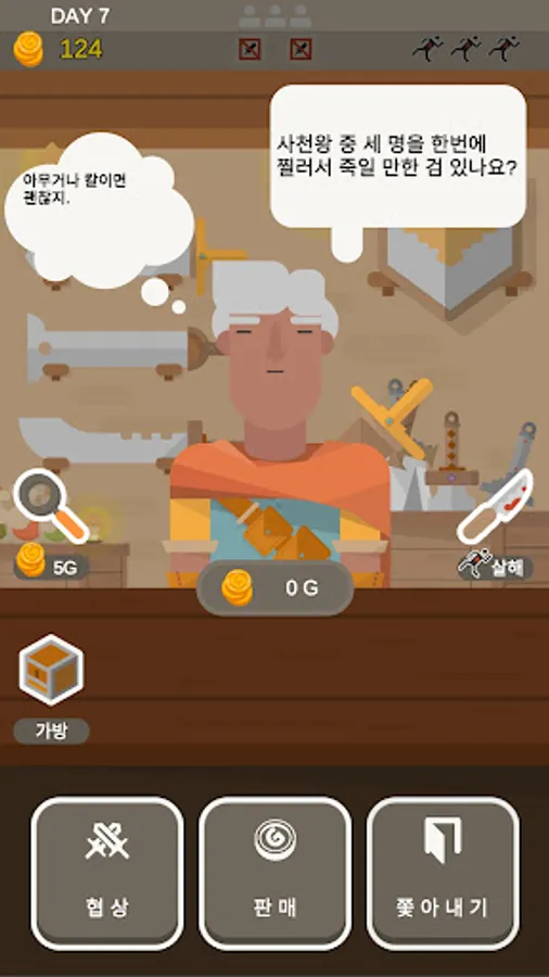 Become the owner of a weapon shop visited by various people.