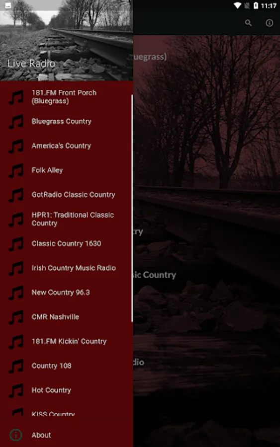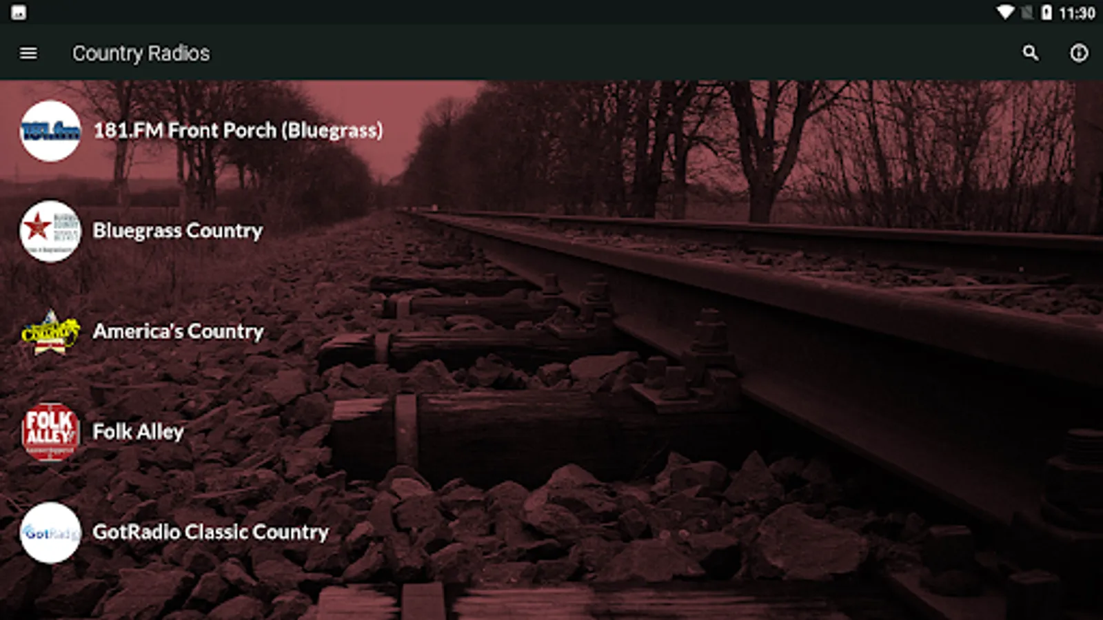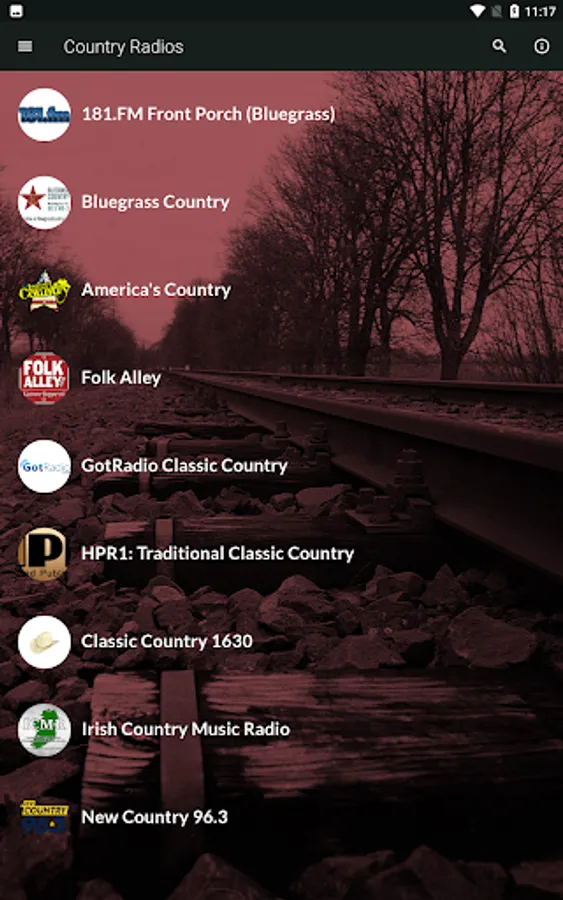 The stations included play primarily country and Southern US music, but also related musical genres, live, through the internet access of your device.