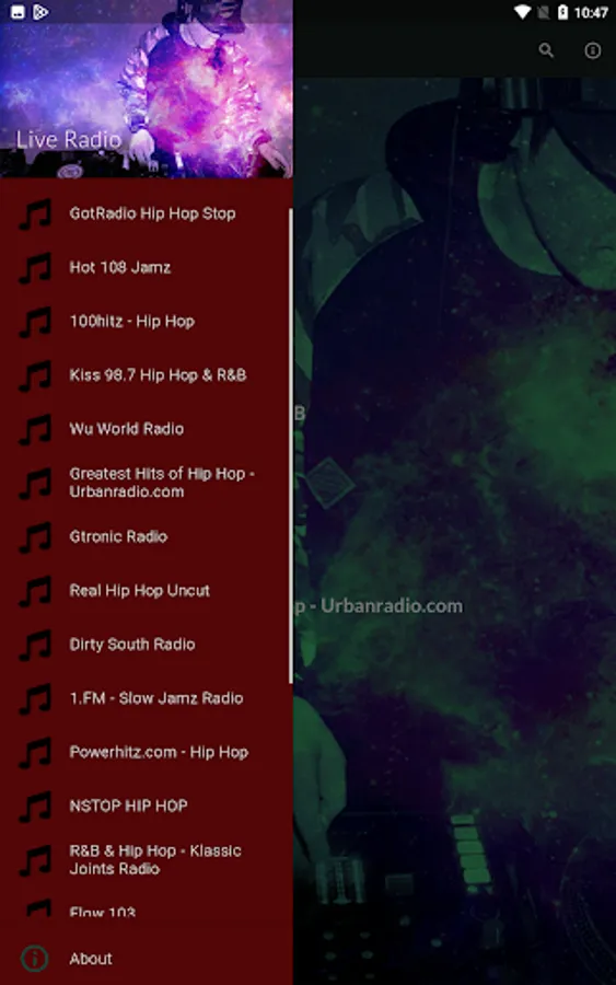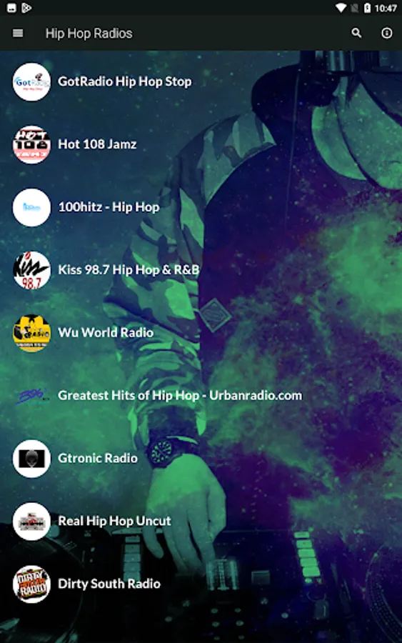 The stations included play music of the urban style, such as hip hop and rap, live, through the internet access of your device.