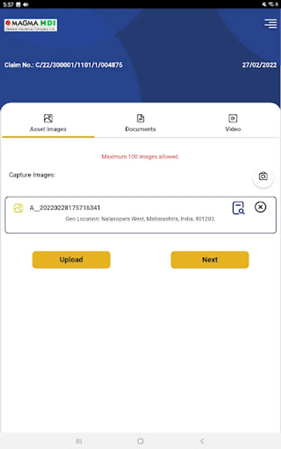 Quick and reliable information – It may so happen that surveyor or inspection team is not in proximity of the loss location. In such cases, the app ensures that insured is capturing minute details of loss and uploading all supporting documents instantly. This will help the claims team to evaluate the loss correctly as once uploaded the data cannot be altered by the insured or any of their representative