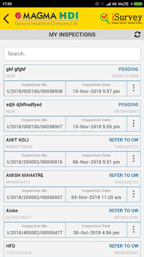 Self Survey/Inspection by Customer, Agents, Inspection Agency Team of Magma HDI