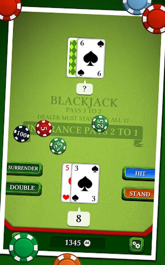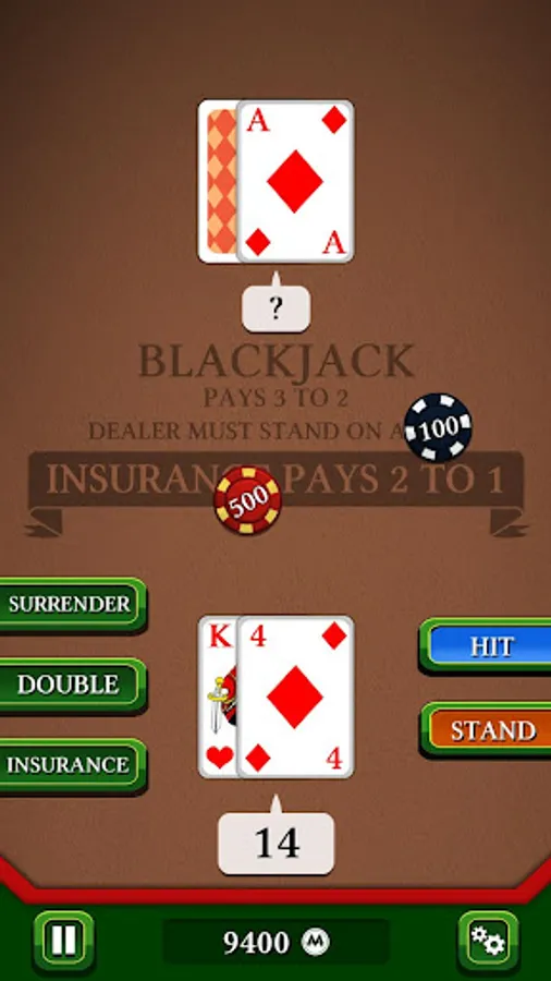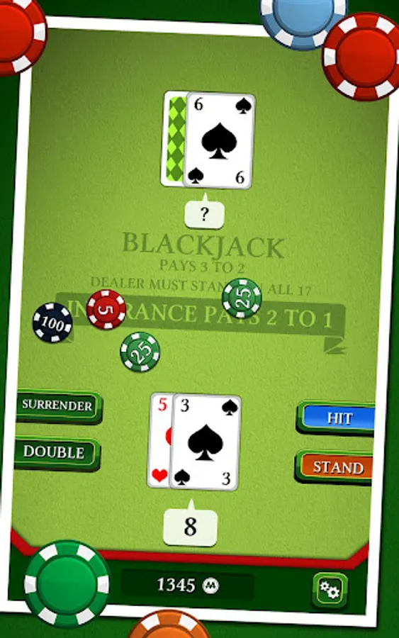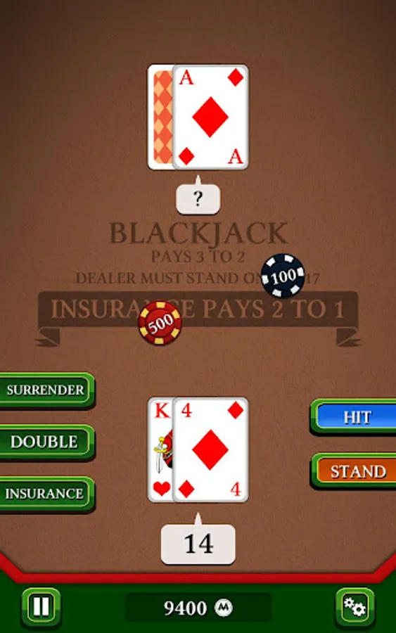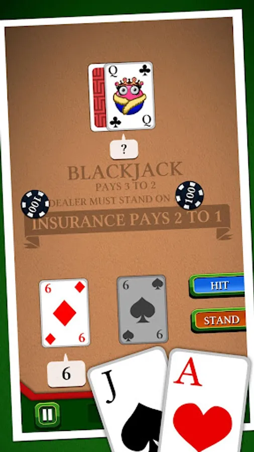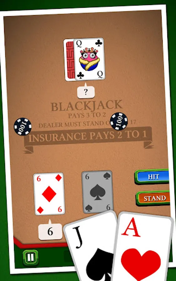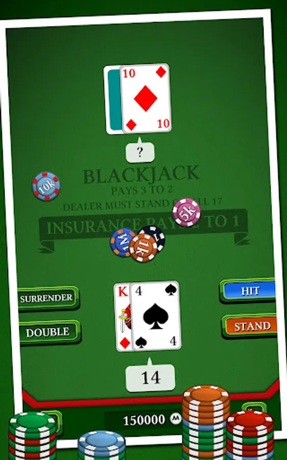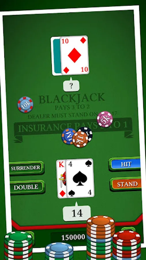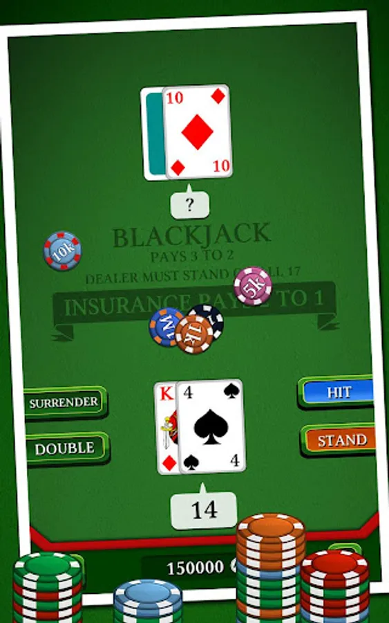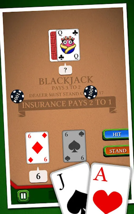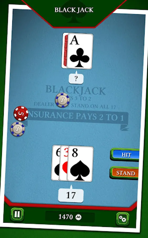 In this famous casino game, your goal is to beat the croupier by having a bigger score, without exceeding 21. Use discernment in choosing insurance, split, or double to try to have a "Black Jack". Will you be able to win the jackpot without going bankrupt ?