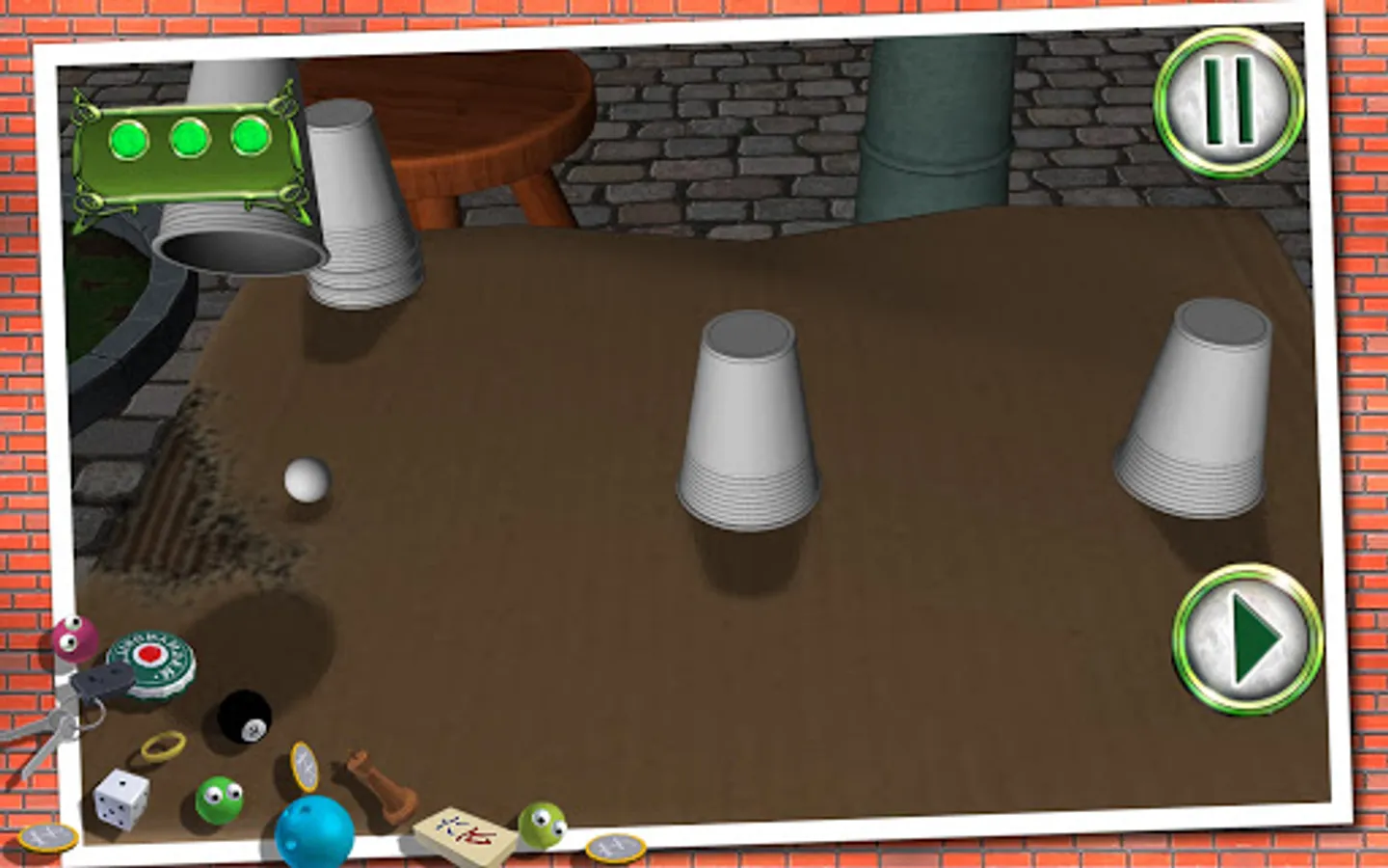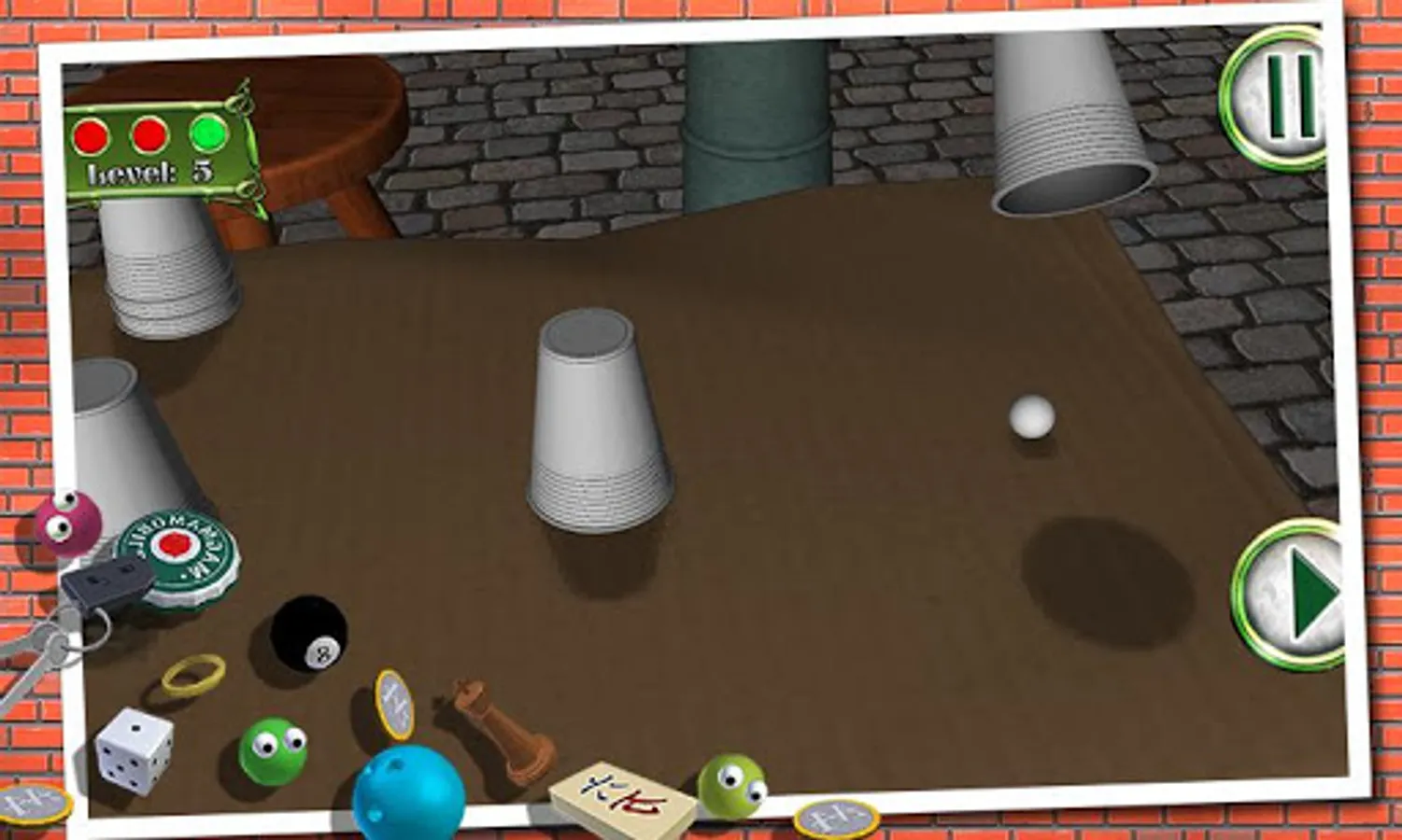 The goal of Shell Game is very straightforward: three or more identical cups are placed face down on a table. A small ball is placed beneath one of these containers so that it cannot be seen and they are then shuffled. You are then invited to choose the container which holds the ball. Can your eyes be trained to level up, guess the right container and let you go up the international rankings?