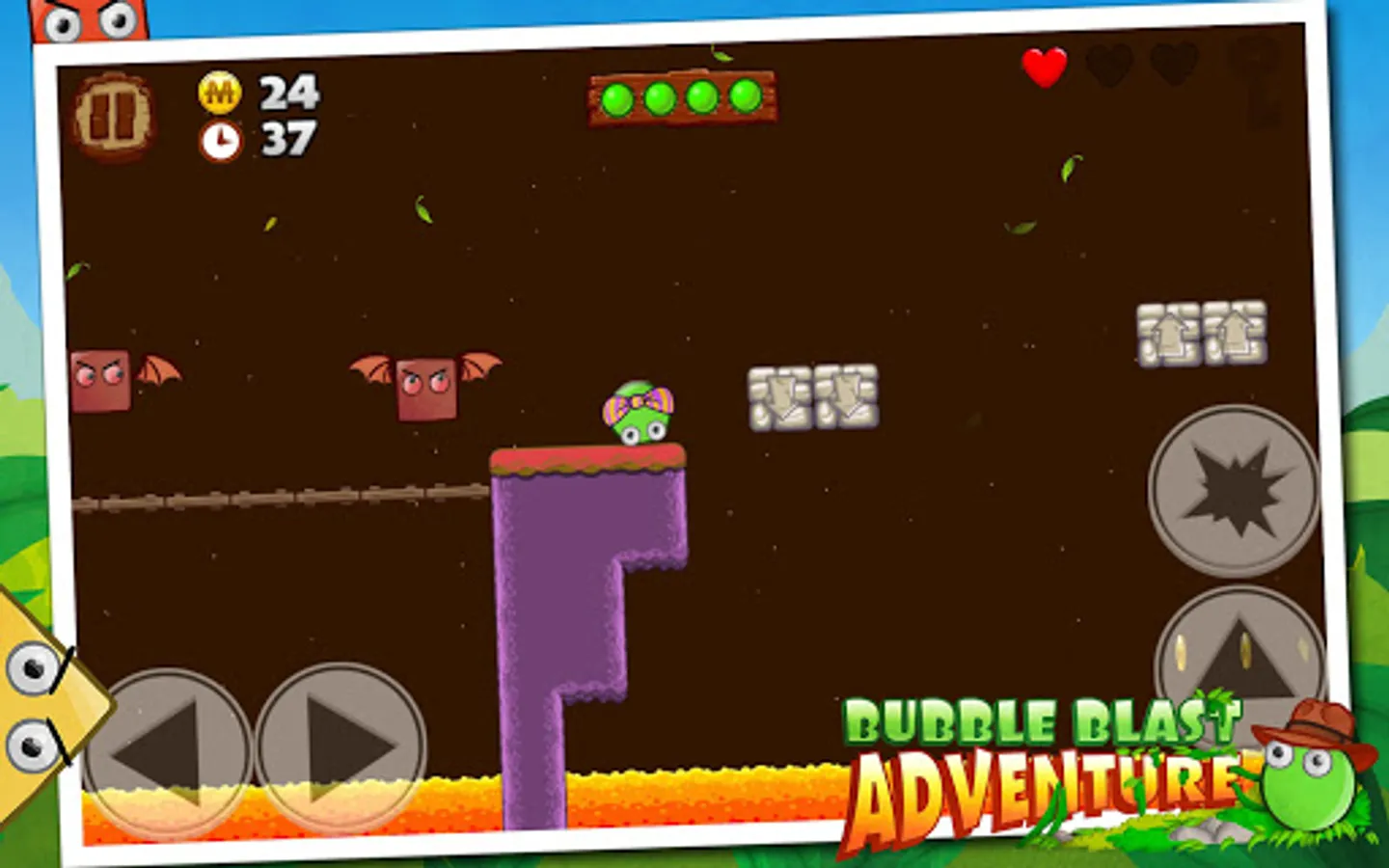 Bubble Blast Adventure is an exciting Platformer where you must race through the levels collecting special items and defeating the evil Bubble Square Tribe.
