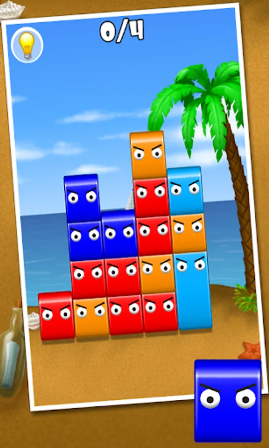 The aim of this puzzle game is to move, swap and drop each square to form series of three or more boxes of the same color in a line to make them disappear.
