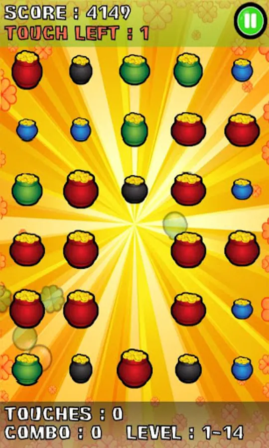 Bubble Blast Saint Patrick's day is a puzzle game in which you burst a shamrock, a pot of gold, an Irish hat or a balloon to trigger a chain reaction in order to eliminate them.