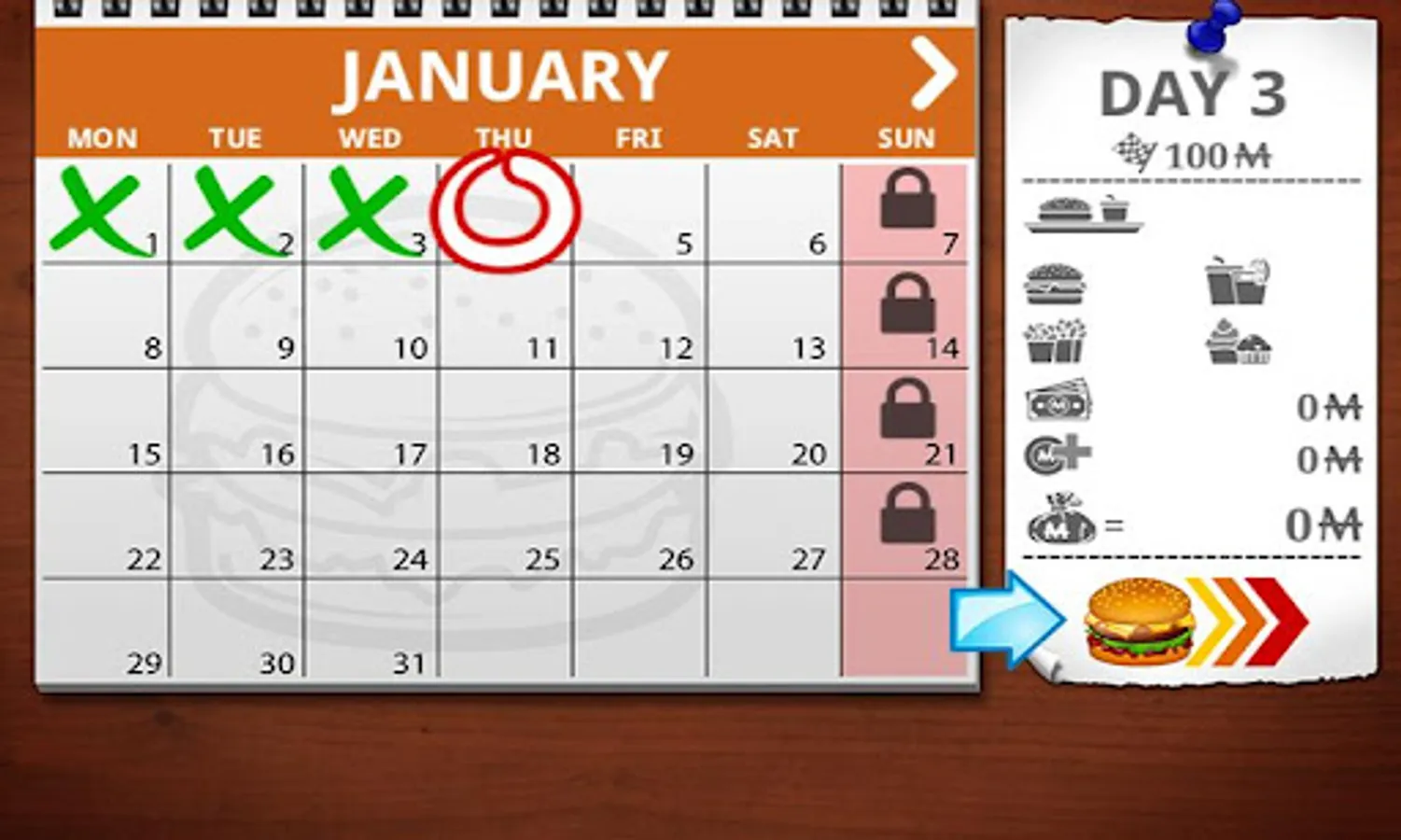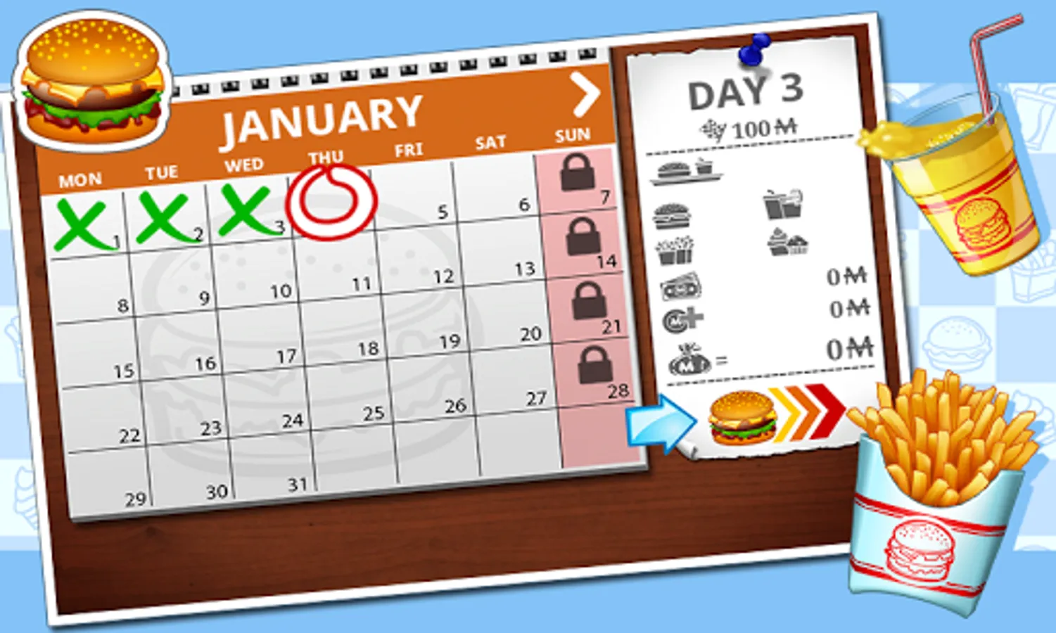 Work from Monday to Saturday and reach your goal to get more money and new ingredients for the service. Then if you are a great employee, you will even unlock a lot of achievements!