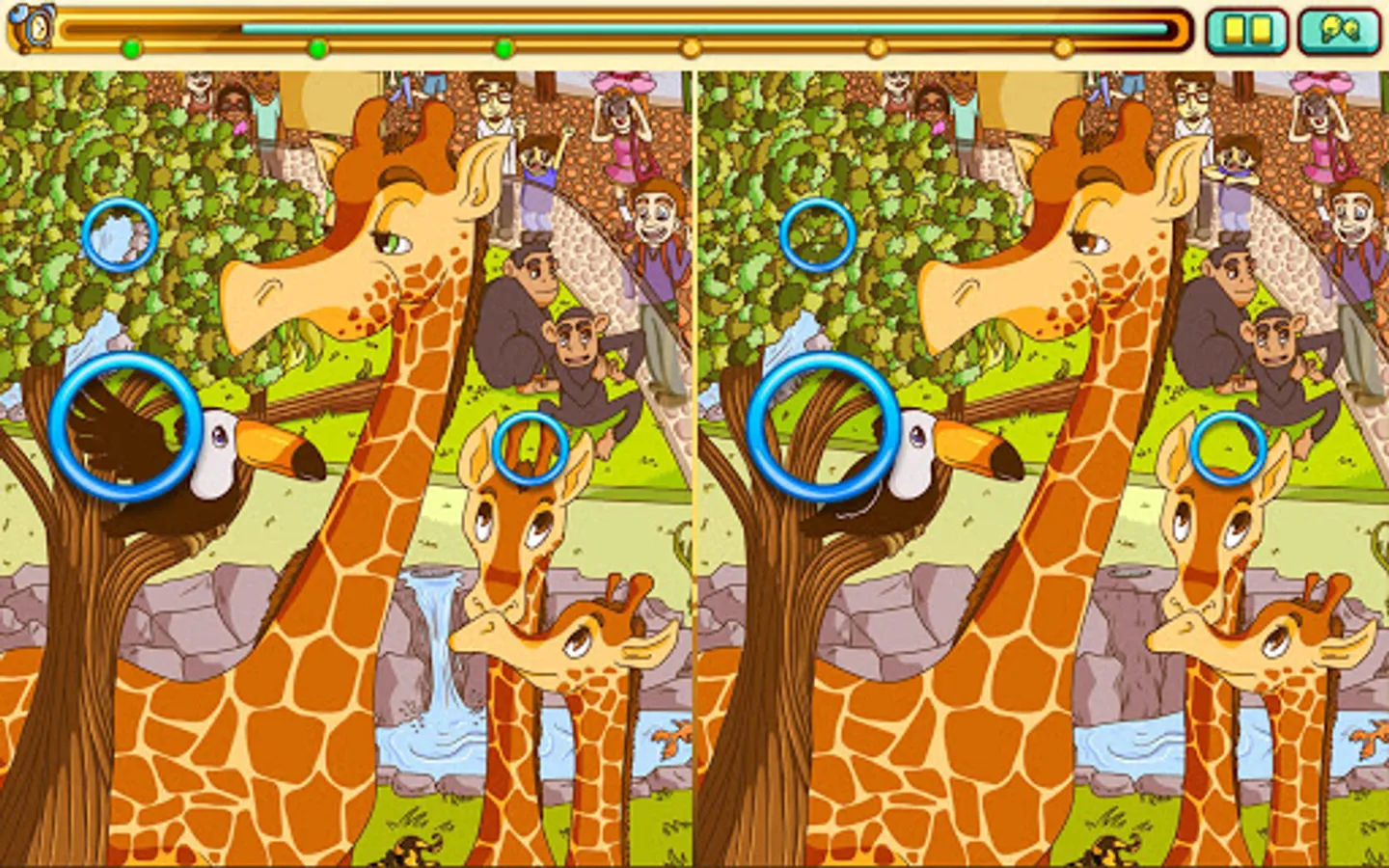 With its unique musical atmosphere and its multiple themes including a birthday party, a zoo, a snowball fight, or a theater play, Spot The Differences 2 will let you find 400 differences accross 10 different board sets.