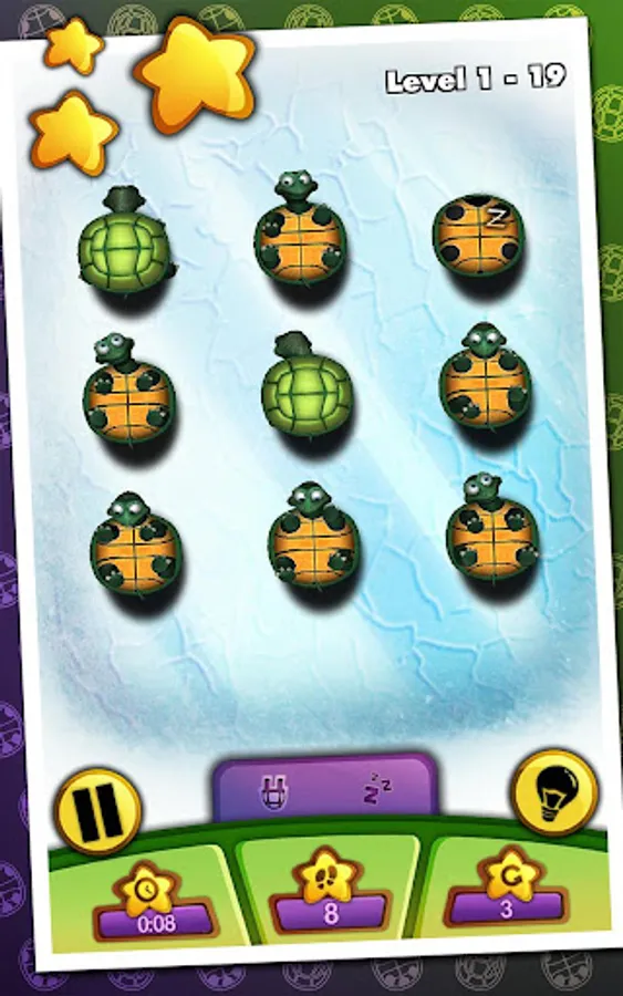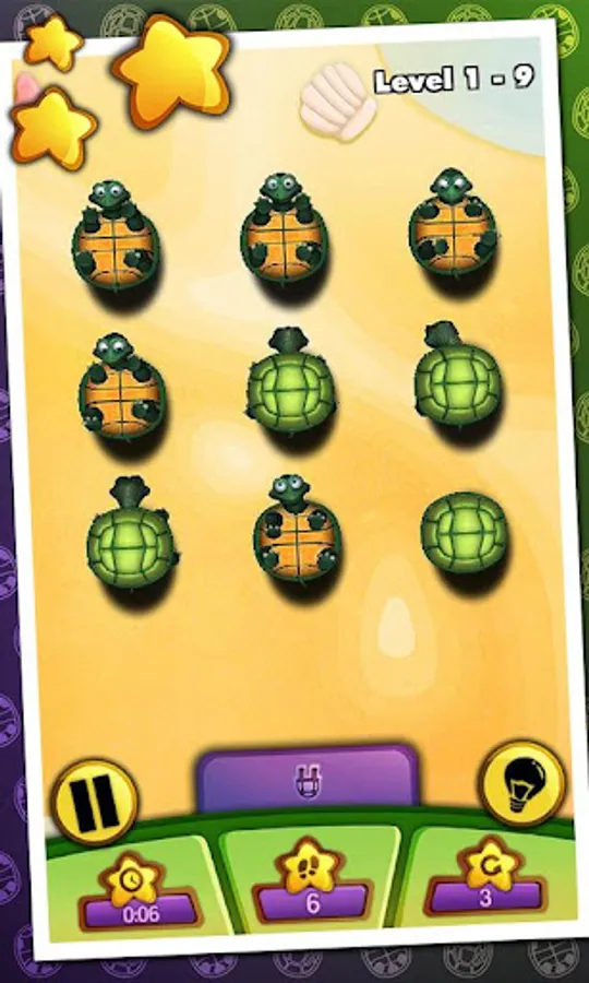 Designed for children and adults alike, Turtles will challenge and stimulate your brain on a daily basis. The goal of the game, turning over all the turtles in the same position is easy and straightforward to understand. However as you progress through the game, you will be faced with levels of increasing difficulty. With over 5,000 free levels included in Turtles, your days won’t be the same anymore.